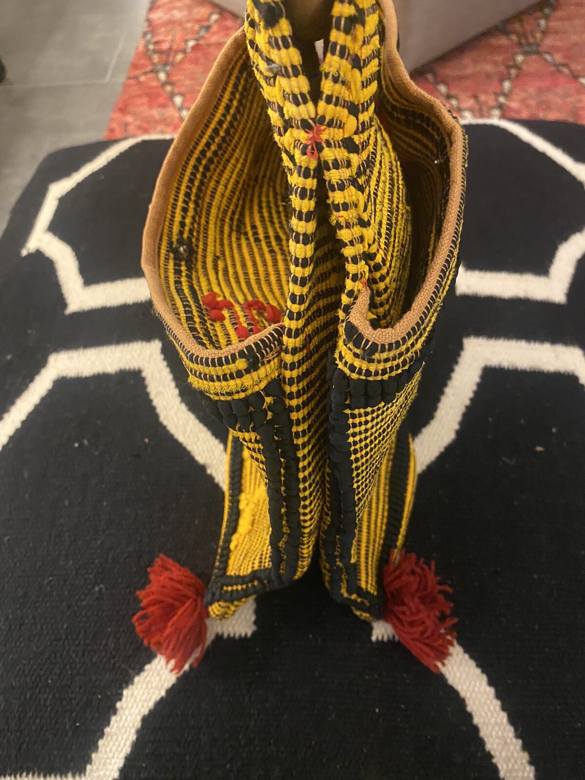 как выглядит Vintage Woven Double-Saddlebag With Rooster Made In Portugal 17 x11 фото