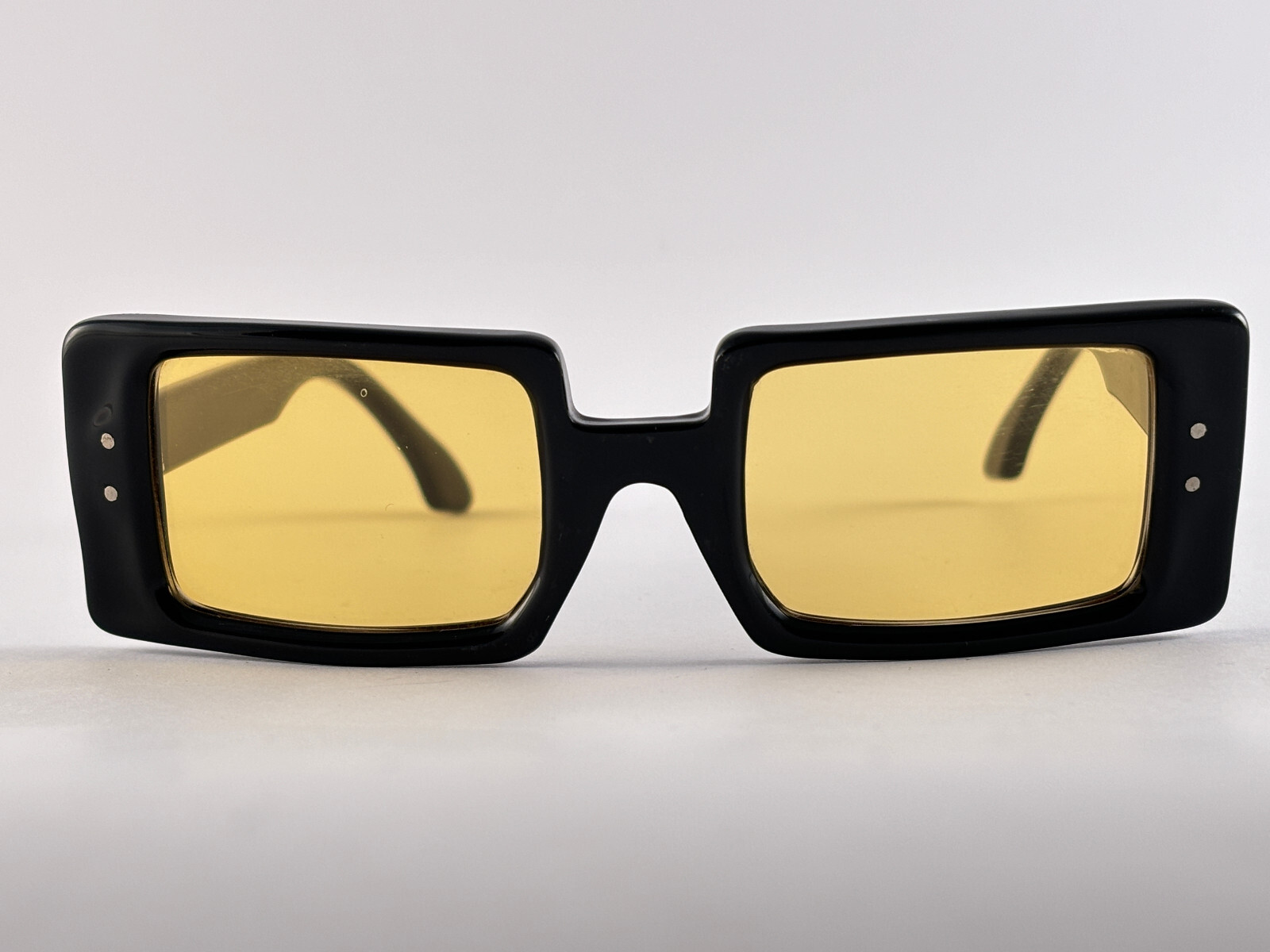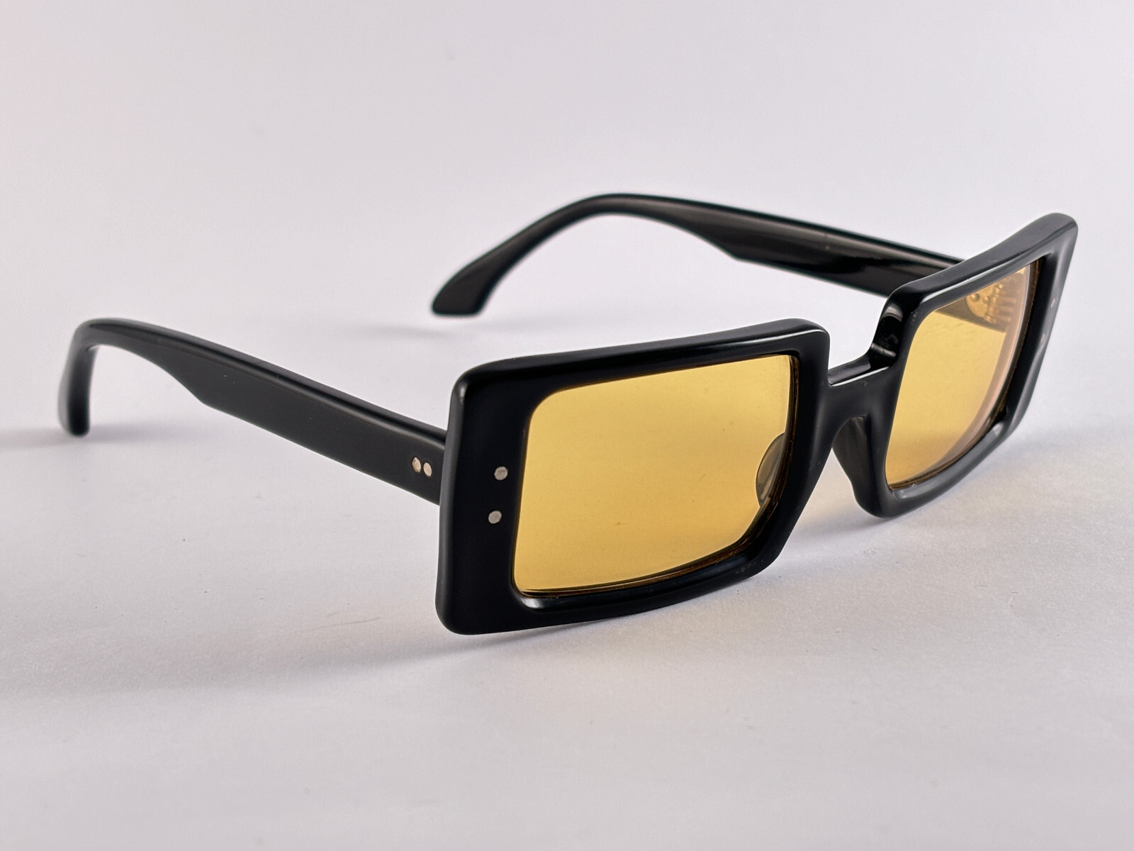как выглядит MINT VINTAGE MIDCENTURY BLACK SLEEK AMBER LENSES SUNGLASSES 1960