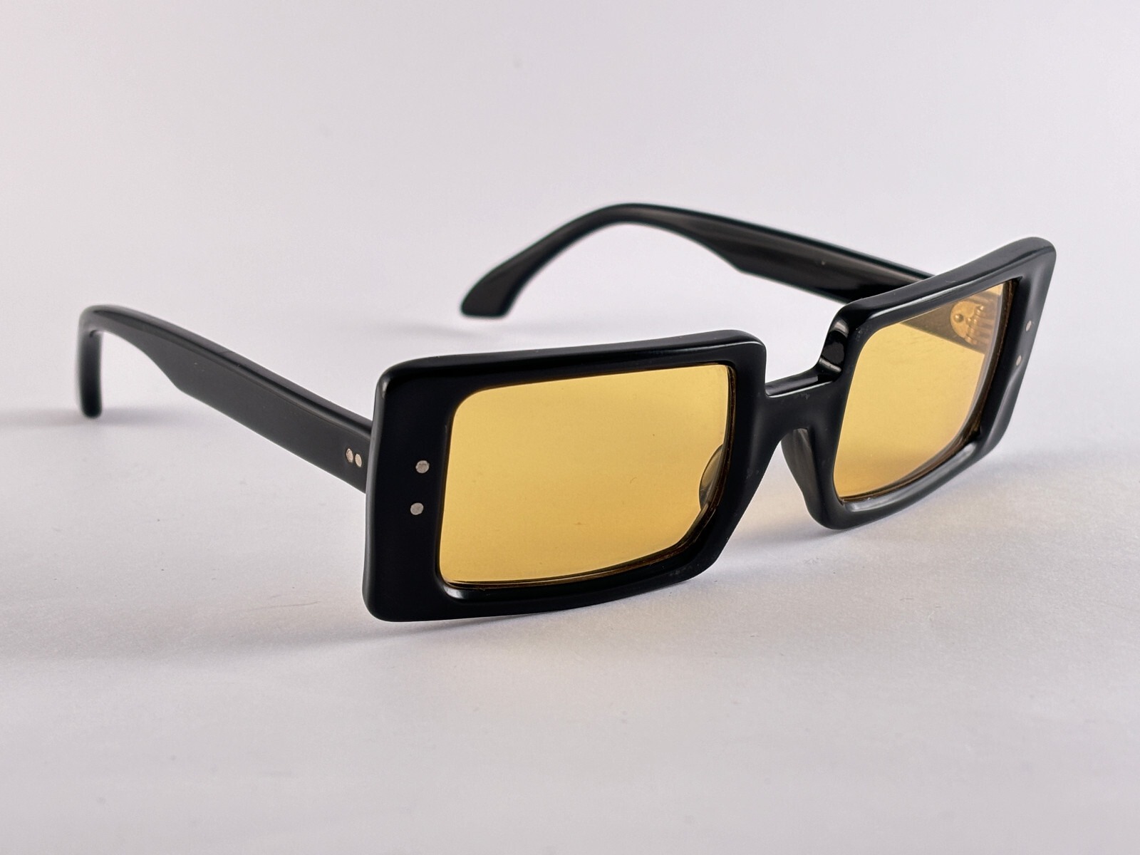 MINT VINTAGE MIDCENTURY BLACK SLEEK AMBER LENSES SUNGLASSES 1960'S