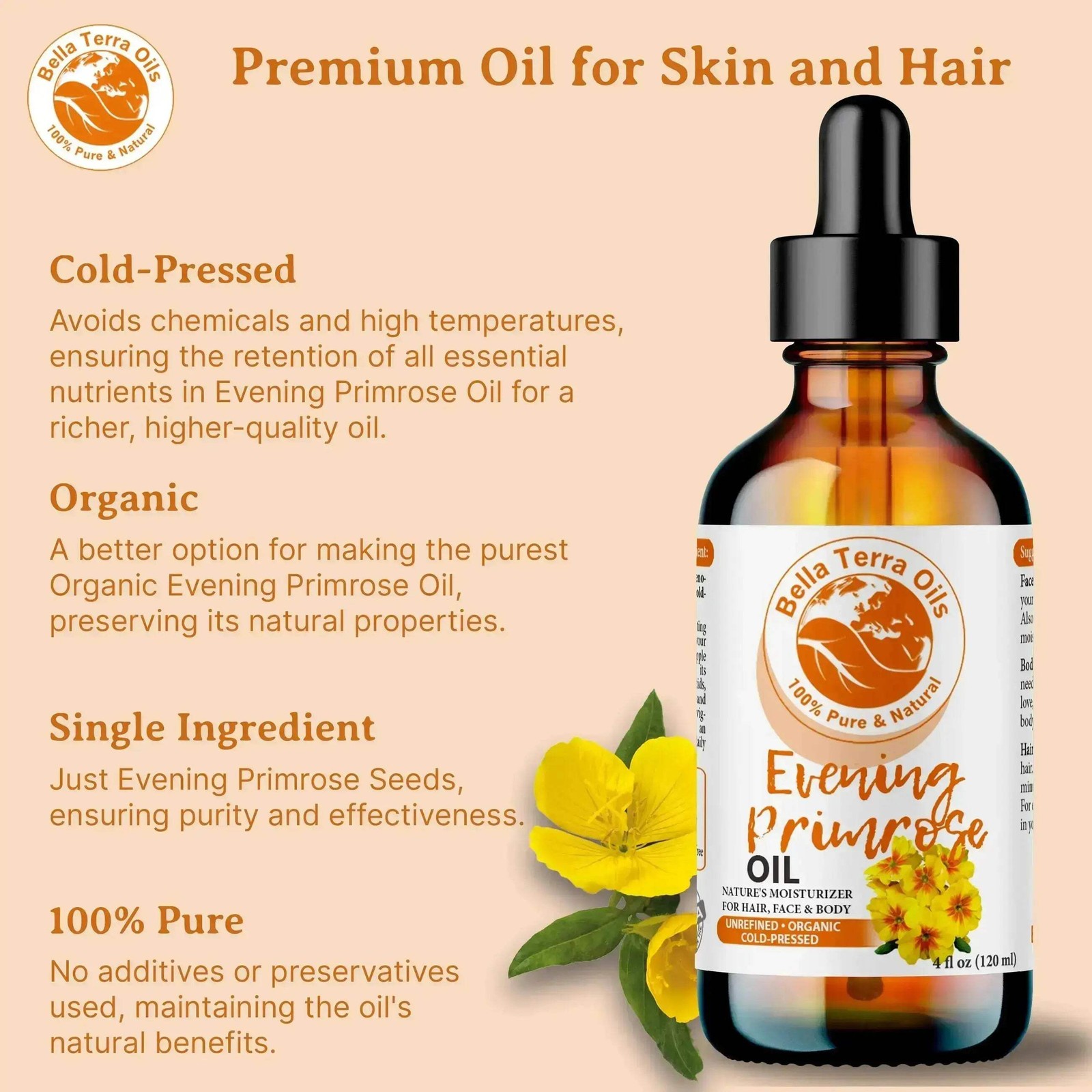 Organic 8oz Evening Primrose Oil - Pure, Cold-Pressed, All-Natural Oil for Beaut