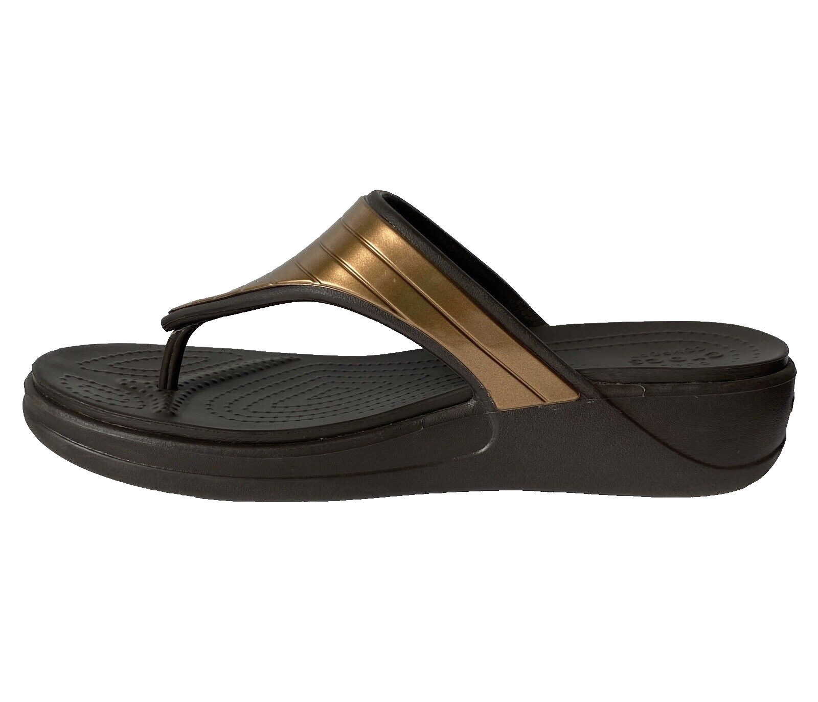 Crocs size 9 Monterey Metallic Wedge Flip flop thong brown w/ copper 20667