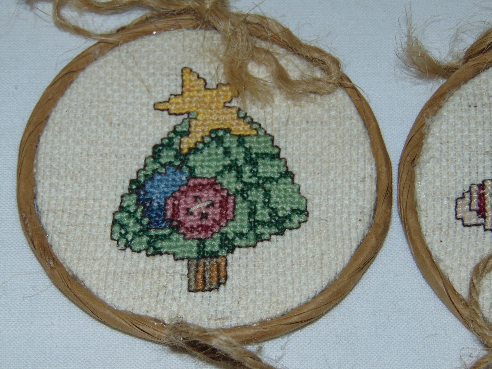 как выглядит Vintage Cross Stitch Needlepoint Handcrafted Christmas Tree Ornaments Set of 8 фото