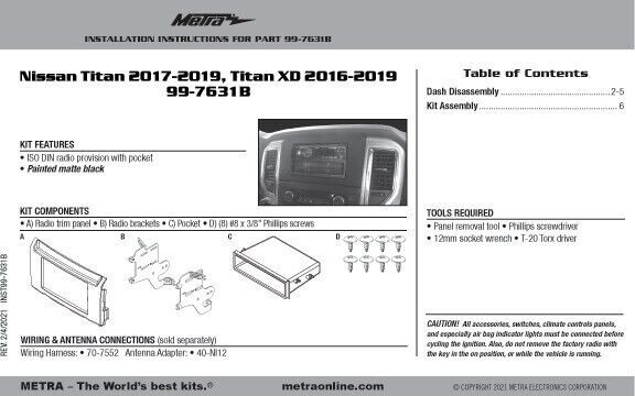 METRA 99-7631B / S-DIN or D-DIN CAR RADIO DASH KIT FOR 2016-2019 NISSAN TITAN/XD