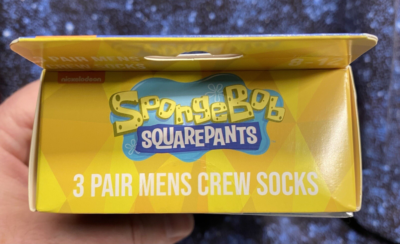 Spongebob Squarepants 3 Pair of Crew Socks Fits Shoe Size 8-12 NIB Bioworld