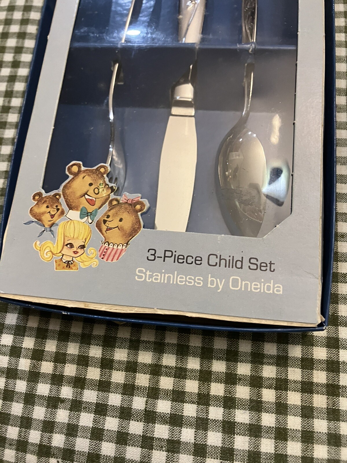 как выглядит Oneidacraft Vintage Silverware Stainless 3-pc Child Set NEW IN ORG PKG фото
