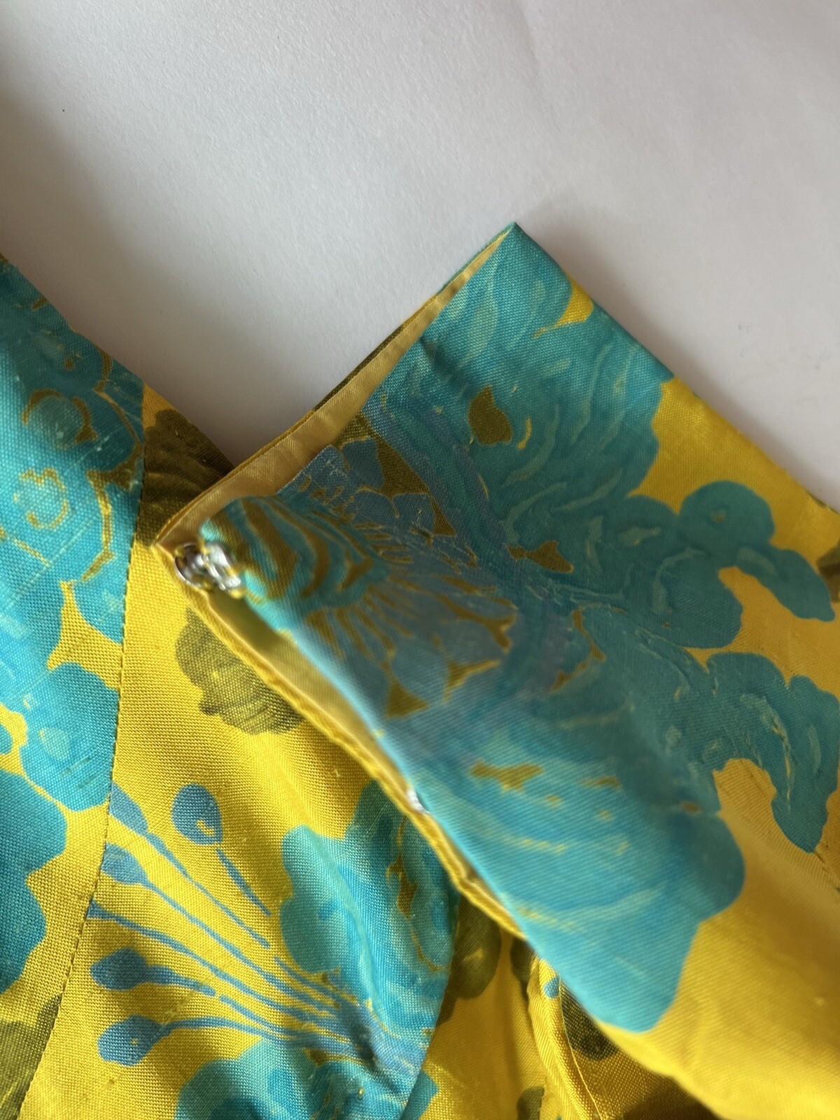 как выглядит Lovely Vintage 1950s Qipao Chinese Silk Floral Turquoise Yellow Dress Good Cond фото