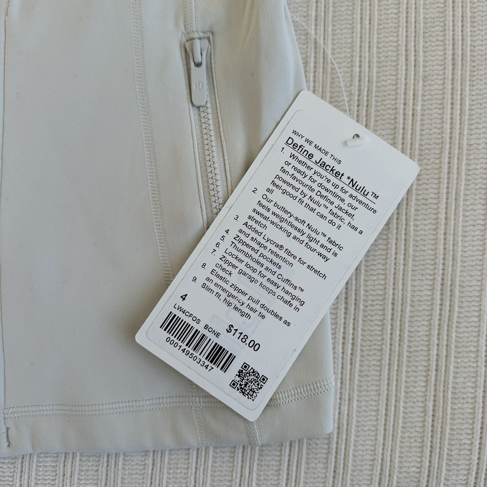 как выглядит Lululemon Define Nulu Jacket - Bone / Size 4 фото