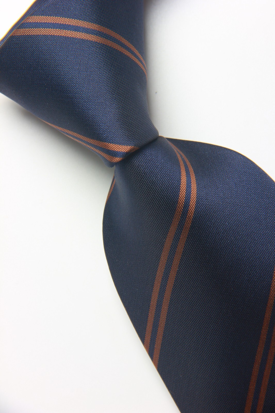как выглядит New Classic Striped Blue Brown JACQUARD WOVEN 100 Silk Men