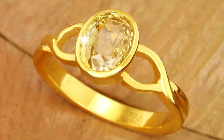 как выглядит Natural Yellow Sapphire Ring Astrological Handmade Ring 14k Gold Plated Silver фото