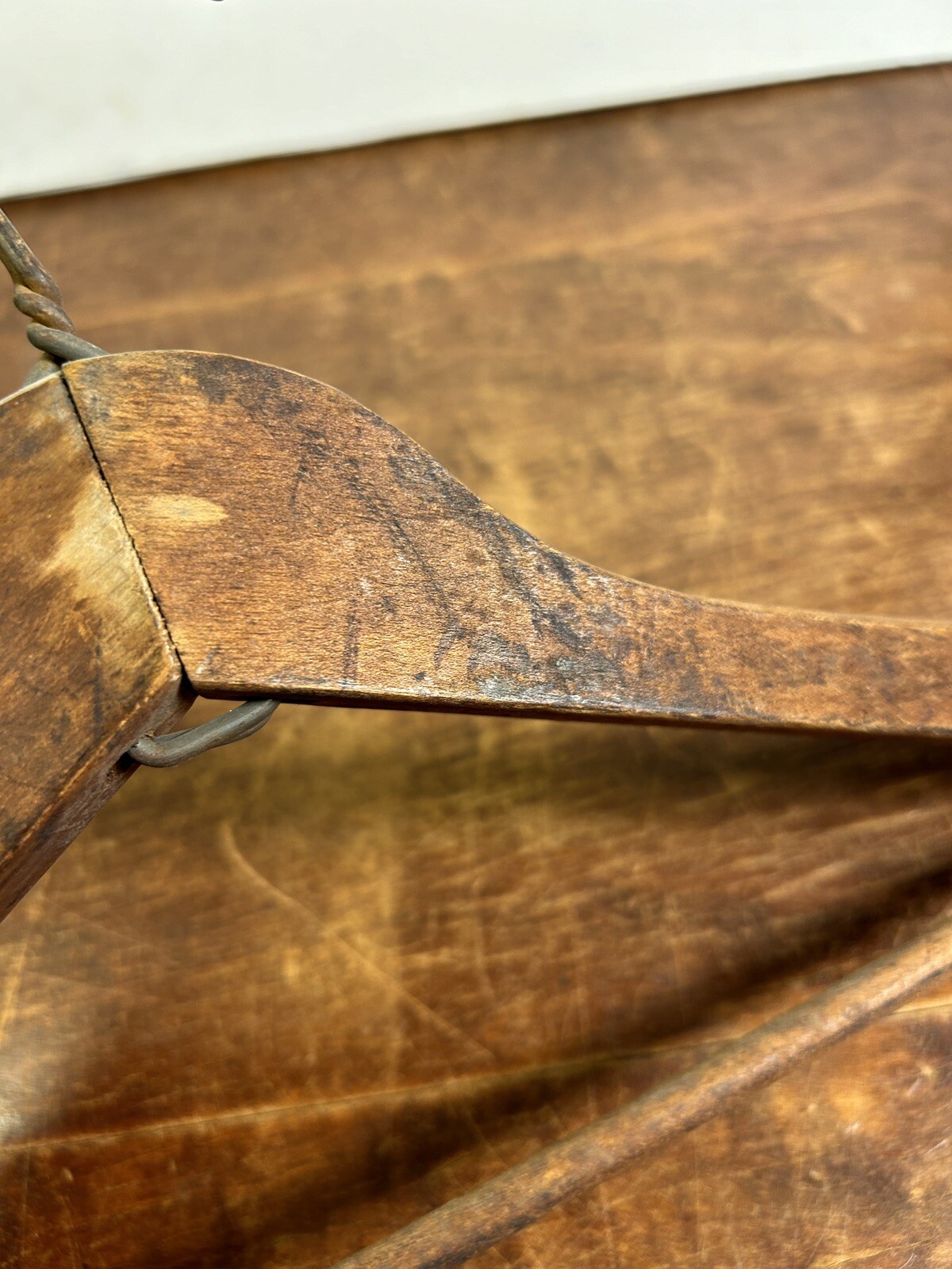 как выглядит Vintage Ackerman Clothes Hanger Wooden Wood and Wire Clothing Holder фото