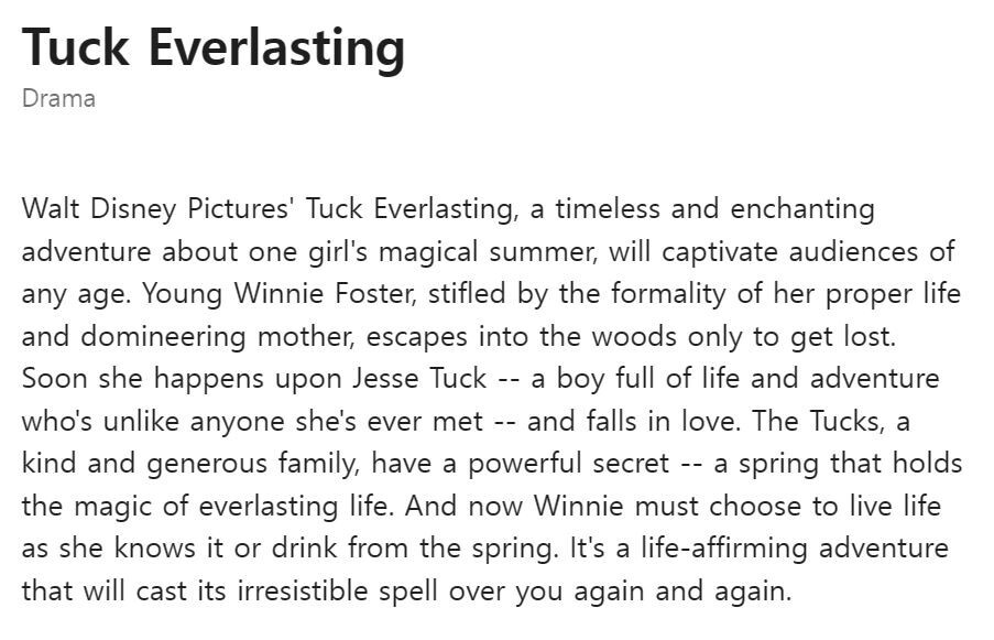 Disney, Tuck Everlasting |
