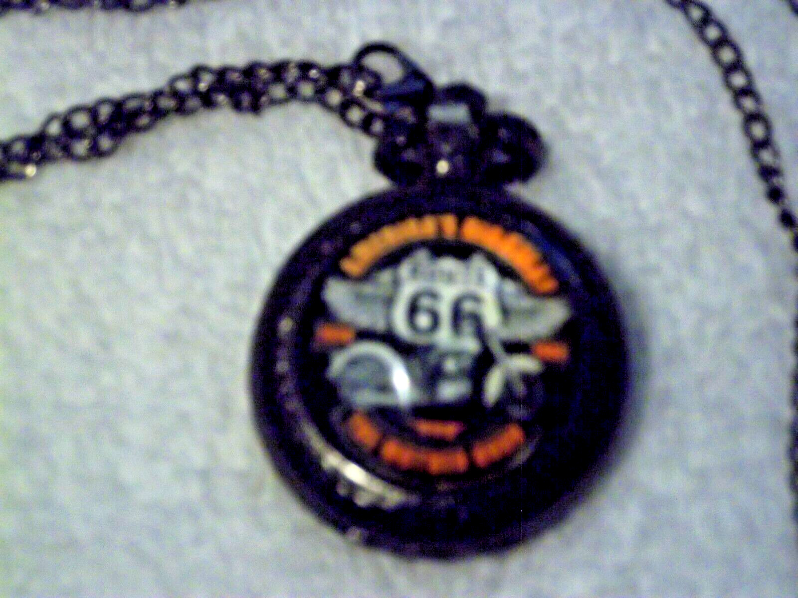 как выглядит Steampunk Pocket Watch Motorcycle RT 66 Biker Chain Quartz Analog Gift NWT Black фото