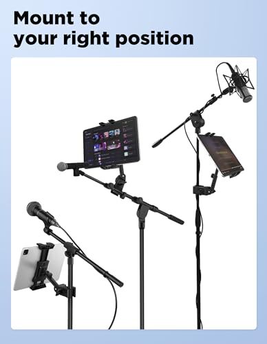 Updated Tablet Mount Holder for Mic Stand, Adjustable Microphone Music Stand X