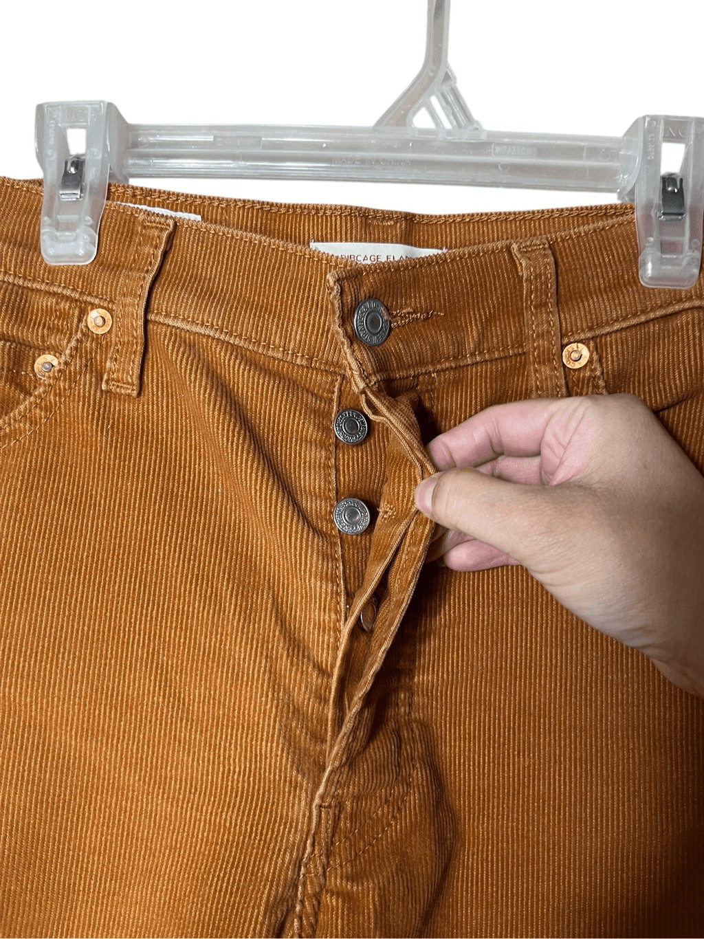 как выглядит Levis Ribcage Flare Button Fly Brown Corduroy Pants Boho 70s Vibes Size 26 фото