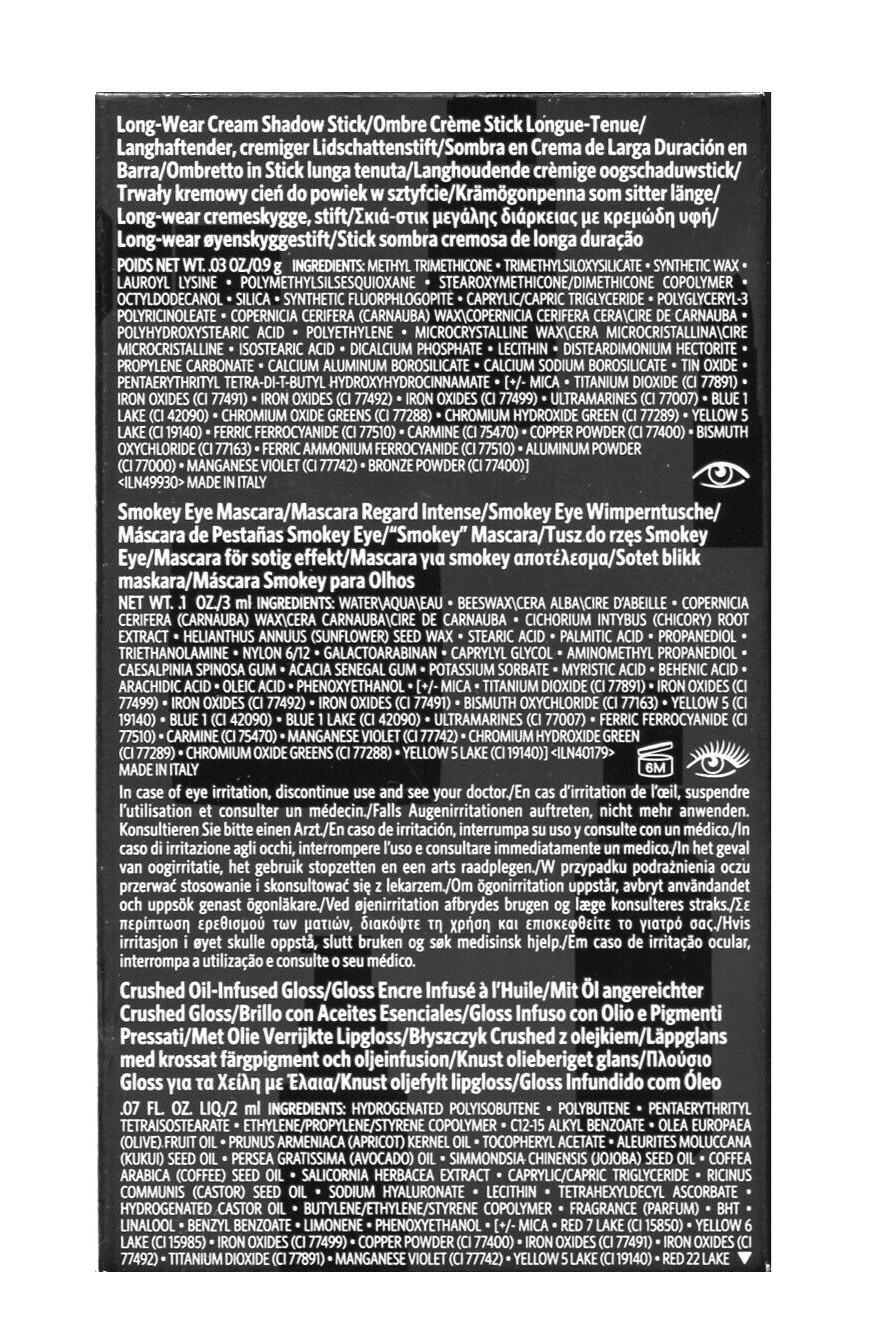 Set Includes: Lip Gloss, Mascara, Cream Shadow Stick