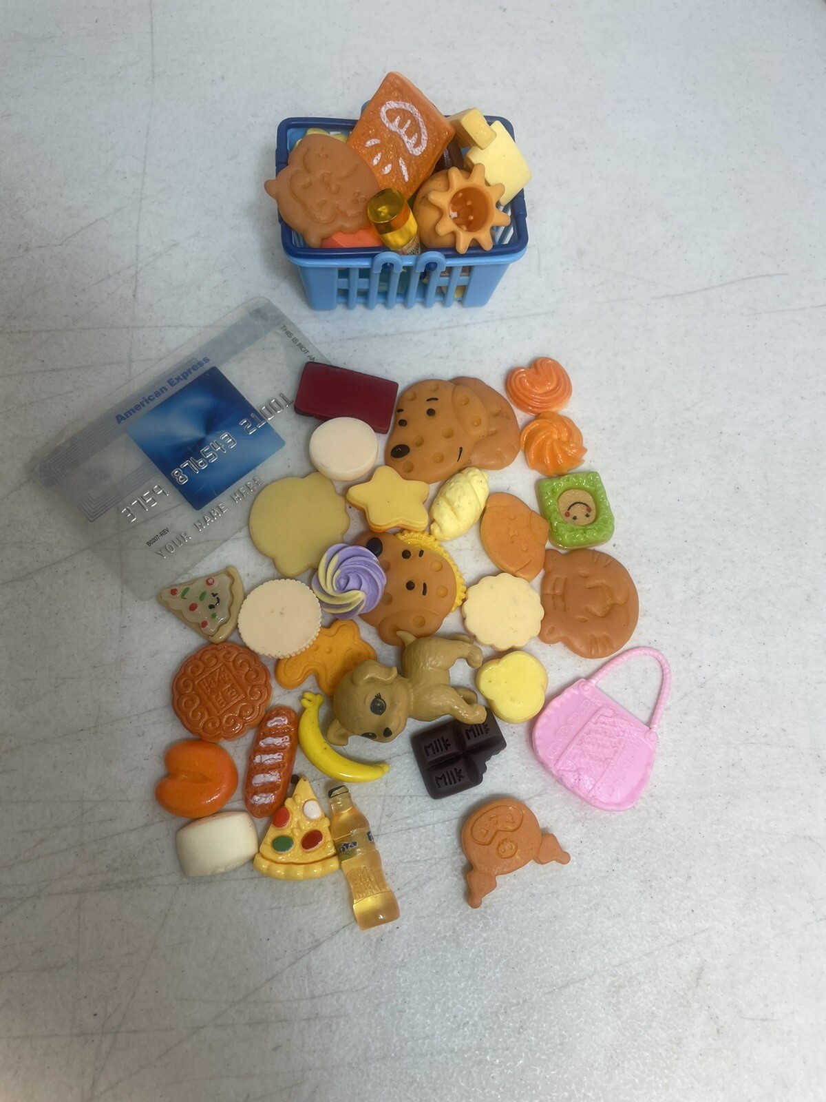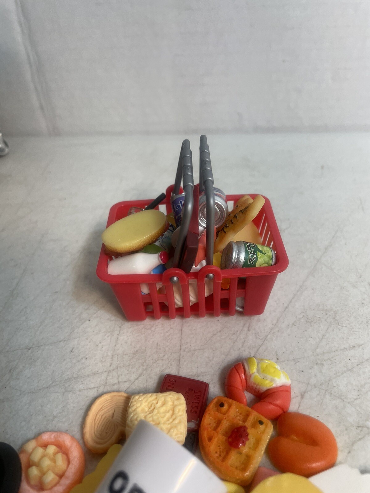 как выглядит CHOICE RED Or BLUE Play Shopping Basket w/40 Pieces of Mini Toy Food Groceries фото
