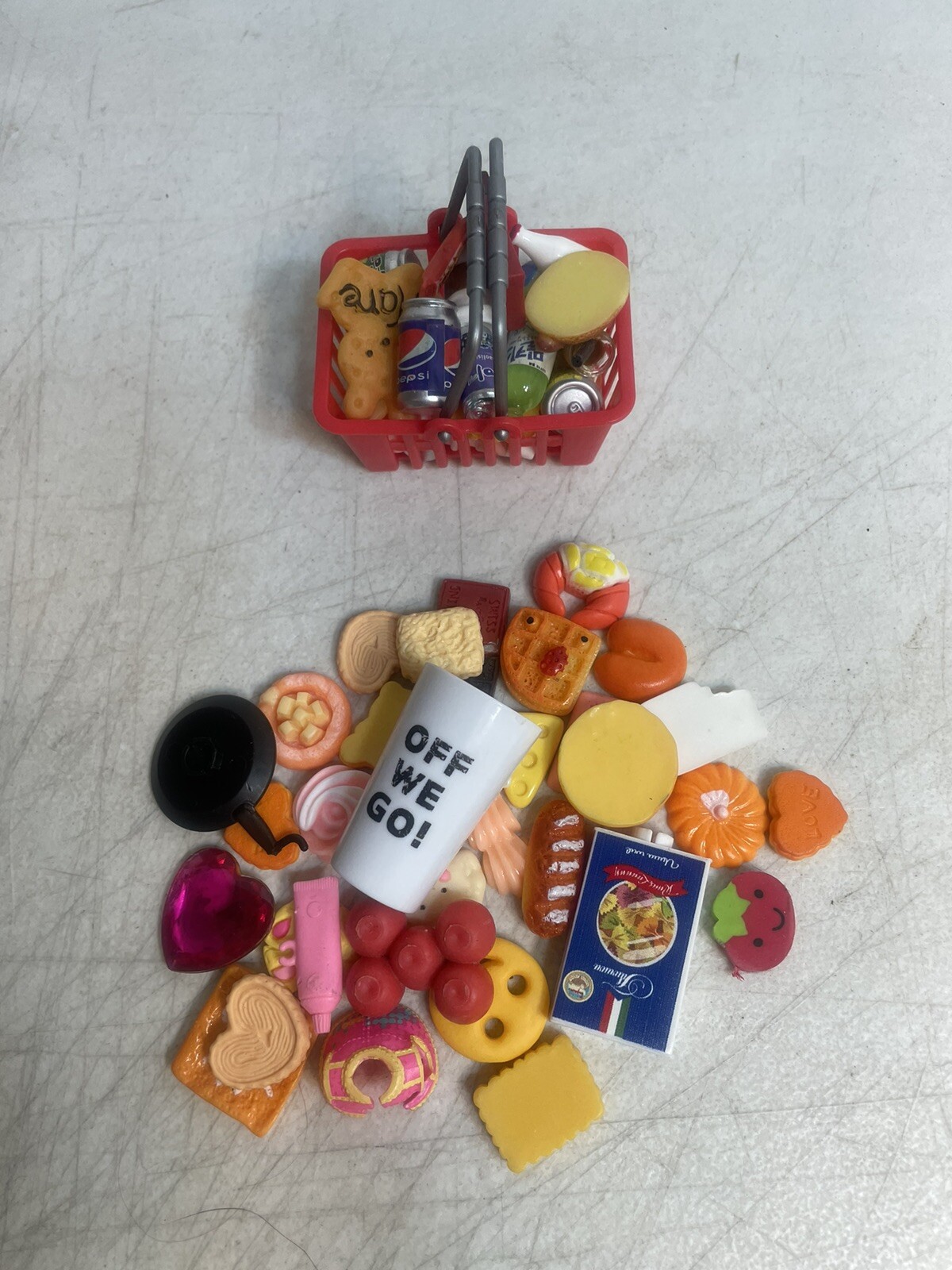 CHOICE RED Or BLUE Play Shopping Basket w/40 Pieces of Mini Toy Food Groceries