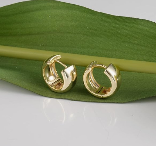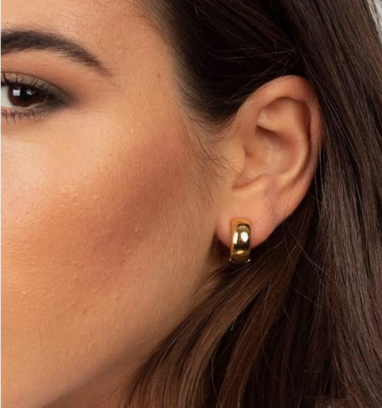 как выглядит Chunky Hoop Earrings for Women 14K Gold Plated Sterling Silver Huggie Hoops Earr фото