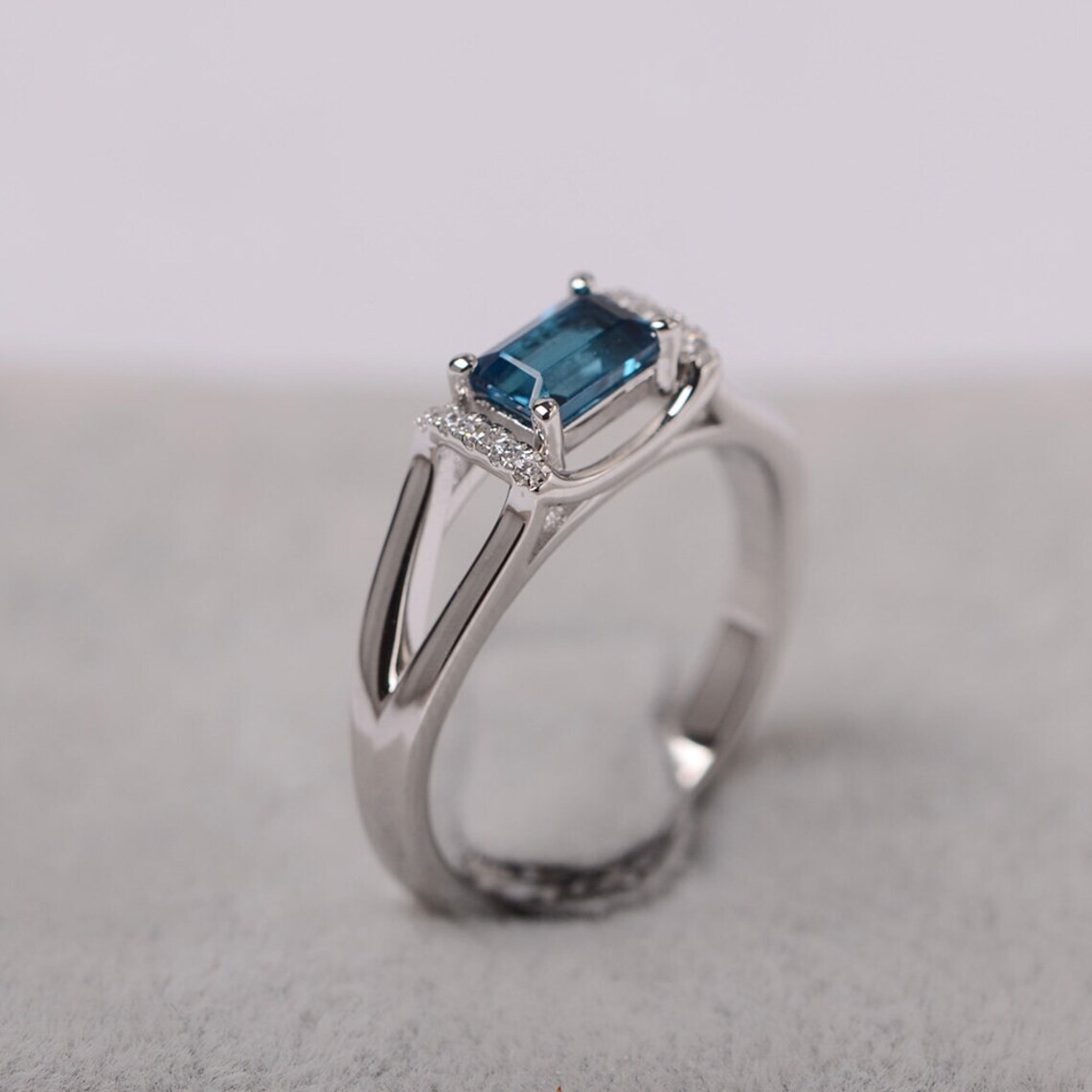 как выглядит London Blue Topaz Ring Emerald Cut Ring 925 Sterling Silver Ring For Women фото