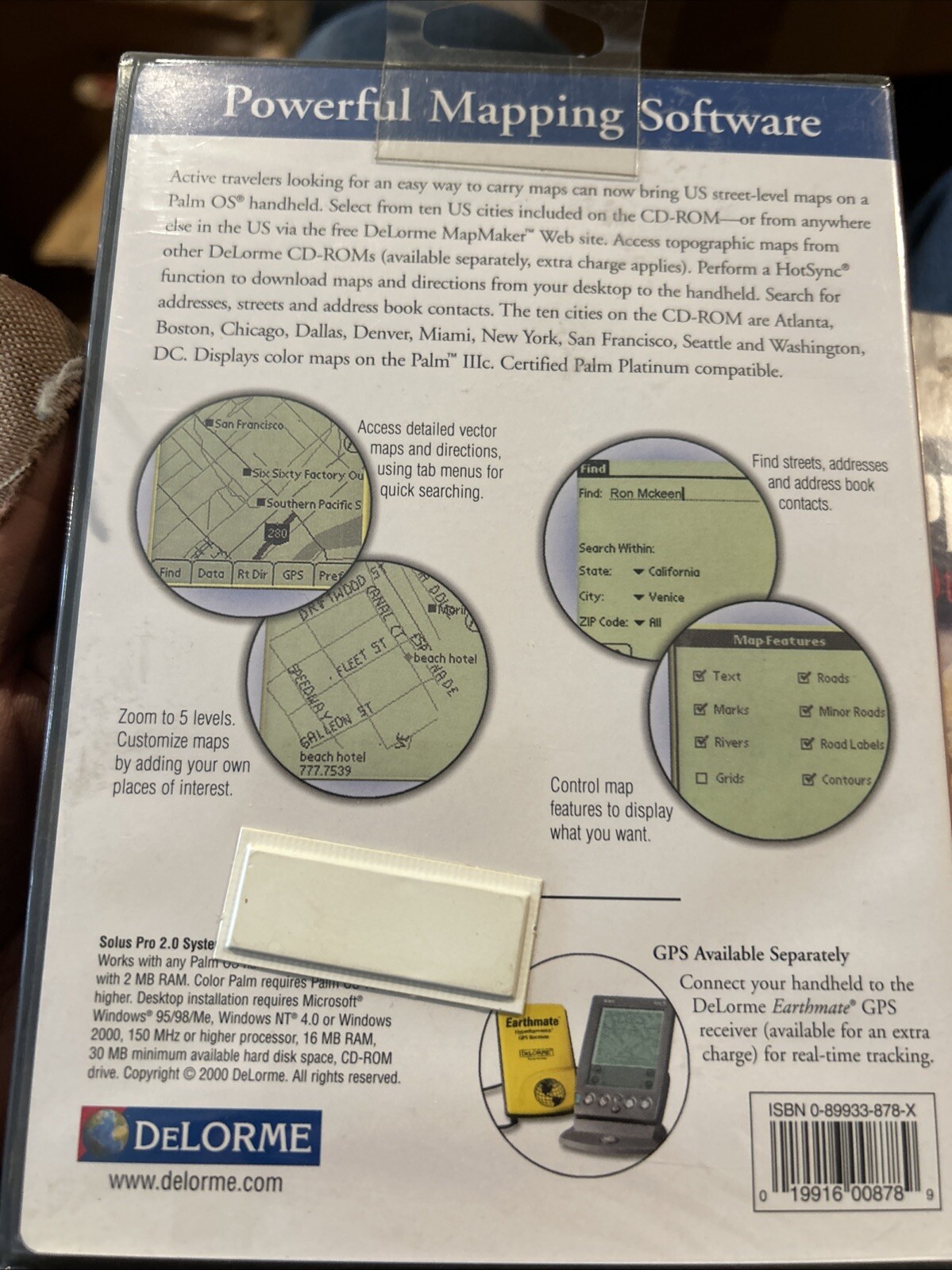 как выглядит DeLORME Solus Pro 3.0 Mapping CD Software For Palm OS Handheld c 2001 excellent фото