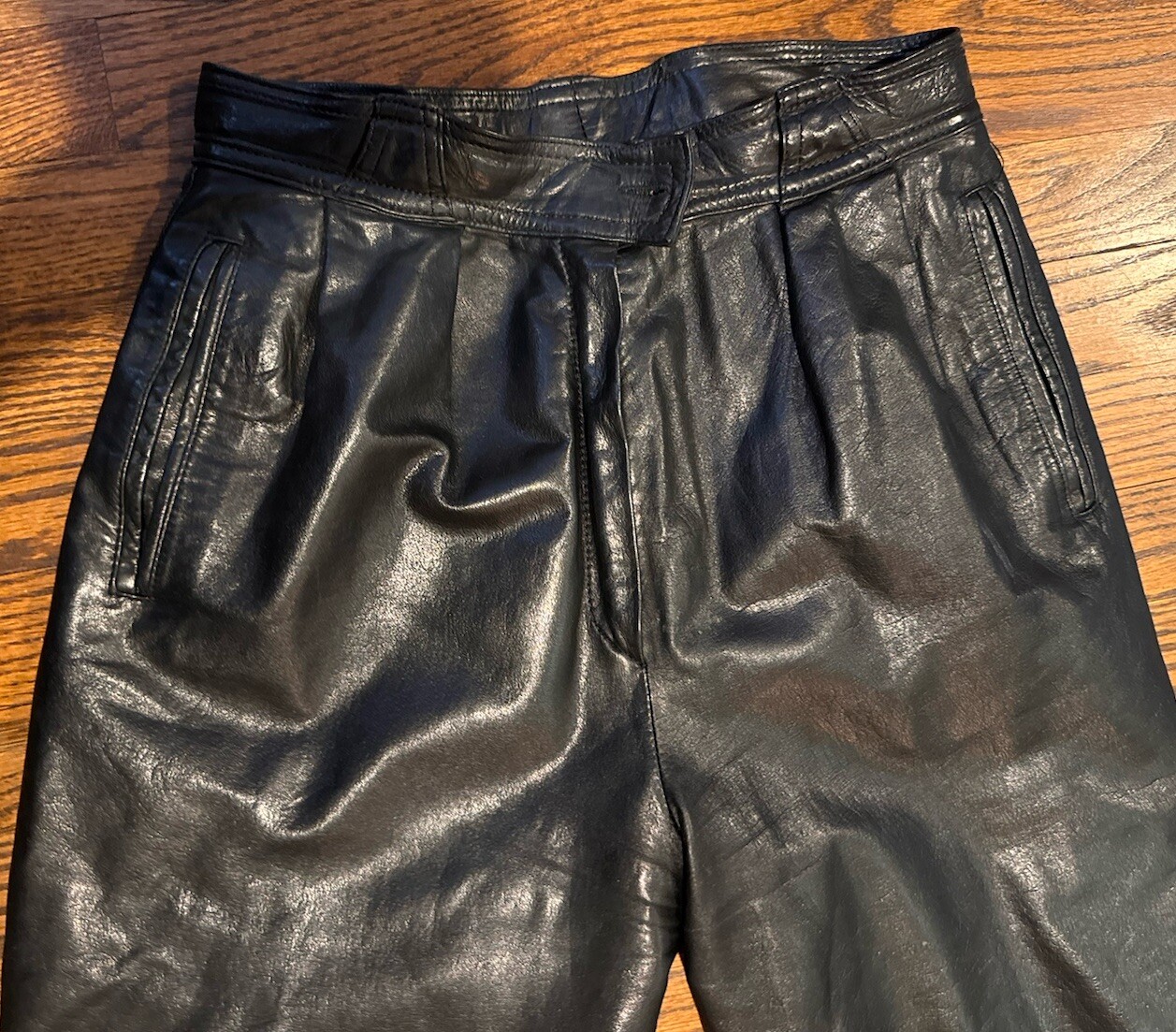 как выглядит Vintage PIA RUCCI Black 100 Leather Pants - Size 8 Lined Pleated фото