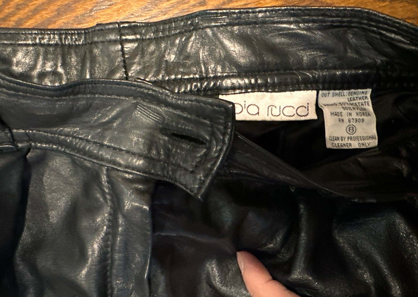 Vintage PIA RUCCI Black 100 Leather Pants - Size 8 Lined Pleated