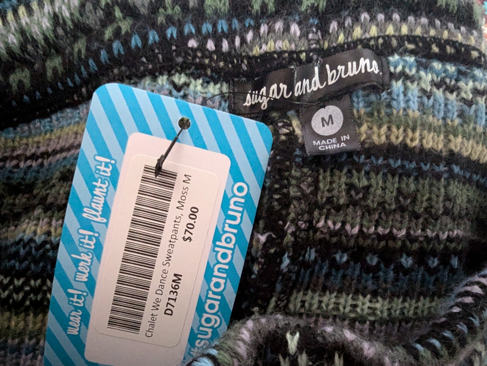 NWT Junior Sweater Knit Leggings Joggers Blue Fair Isle Small NEW Sugar Bruno