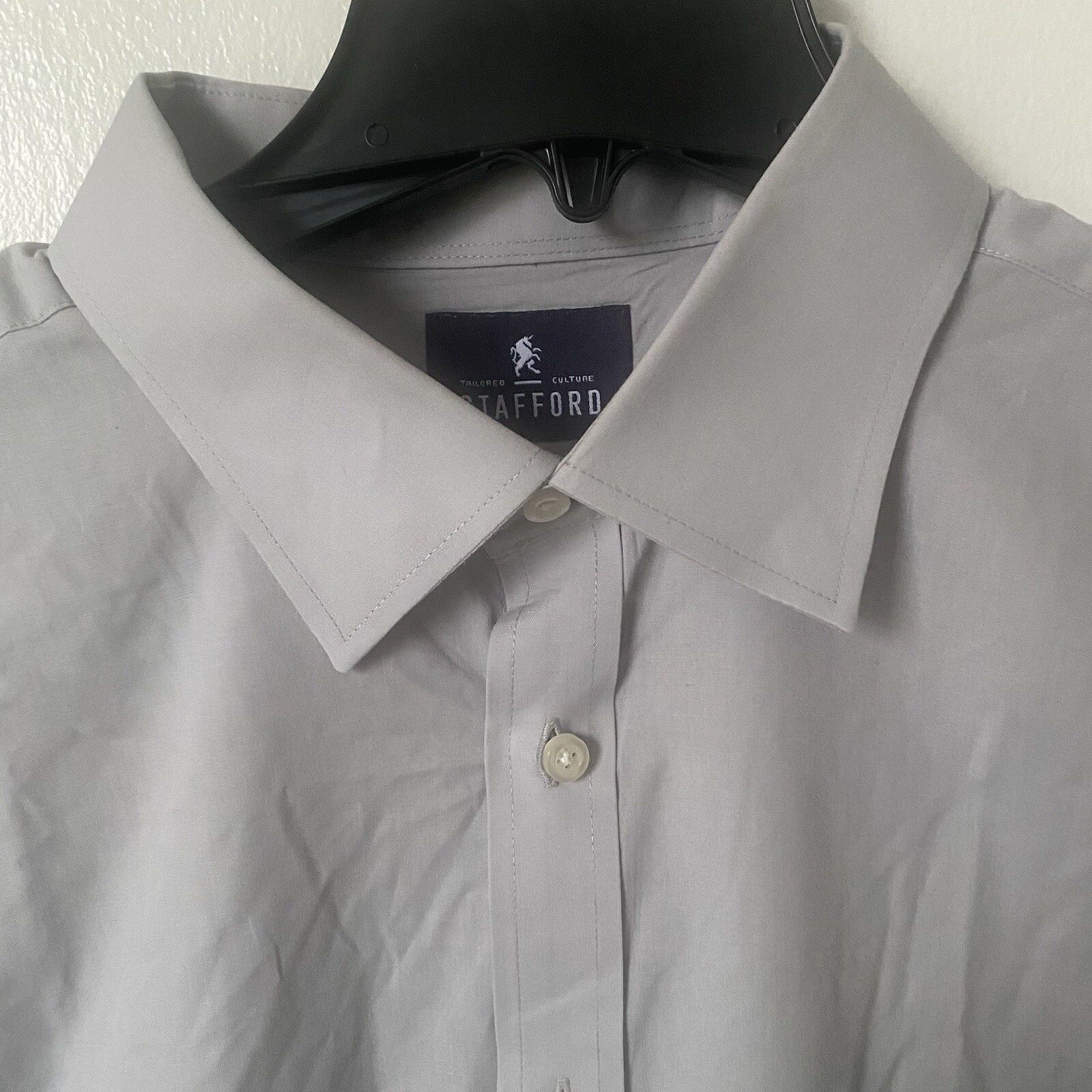 как выглядит Stafford Mens Travel Easy-Care Broadcloth Stretch Fitted Dress Shirt фото