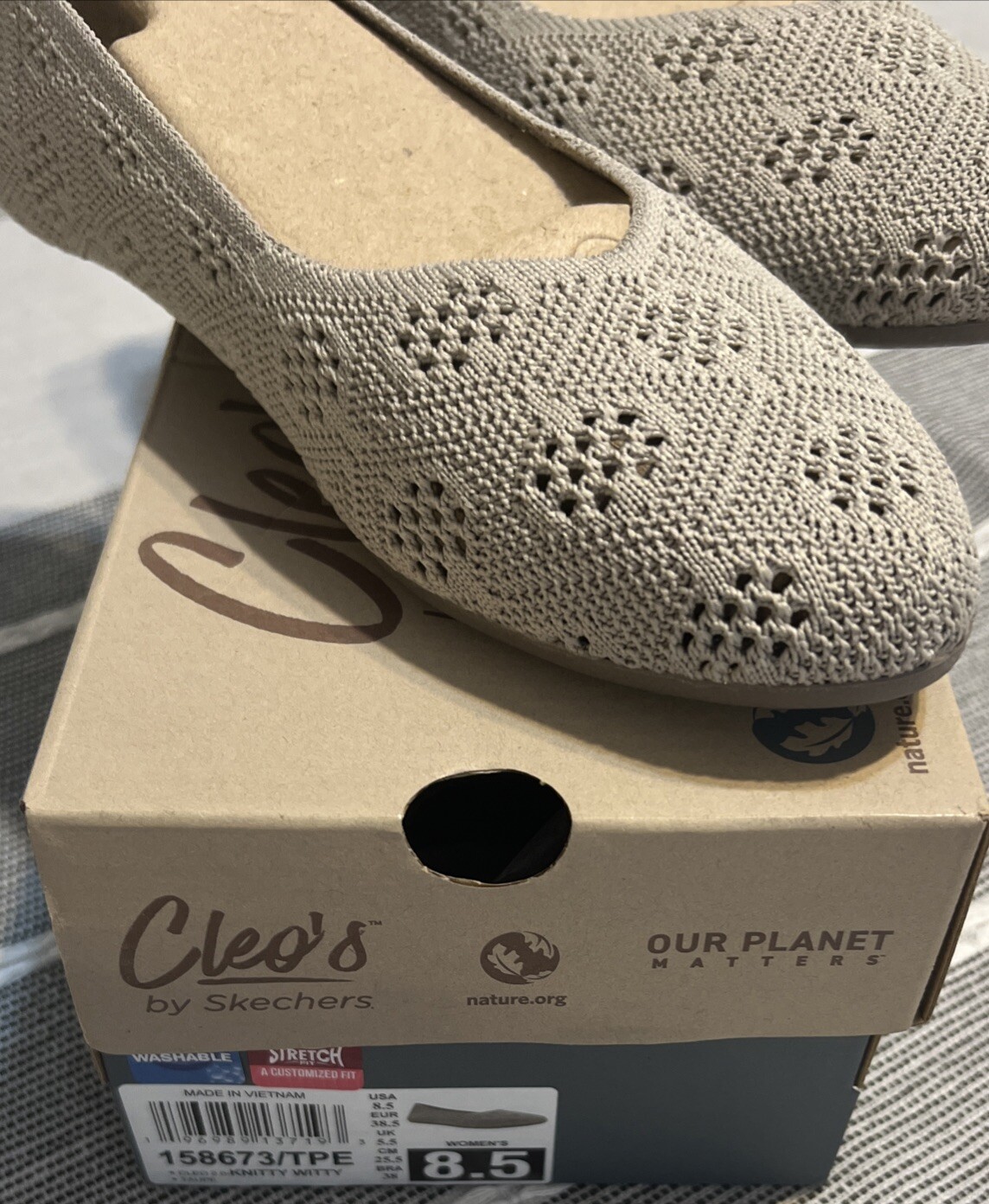 Skechers Cleo Recycled Vegan Knitty Witty Loafer Taupe NIB NEW