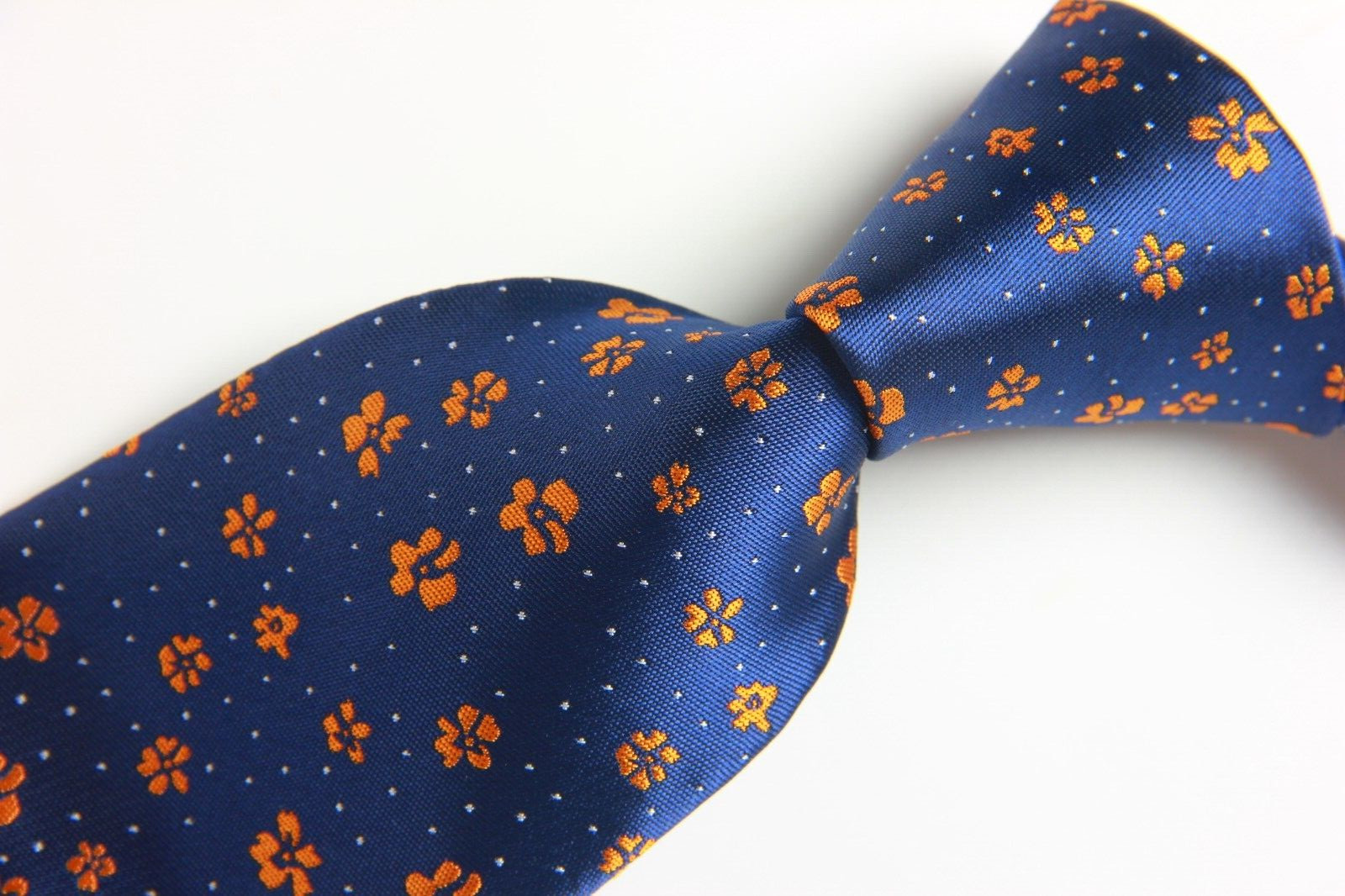 Classic Floral Polka Dot Blue Orange JACQUARD WOVEN 100 Silk Men's Necktie Tie