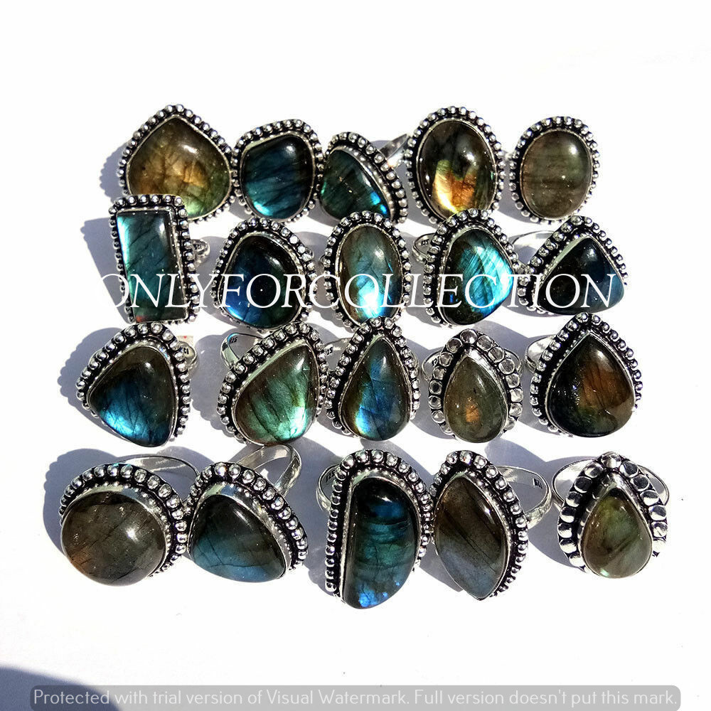 Natural Labradorite Gemstone 925 Sterling Silver Plated Designer Rings Lot 10pcs