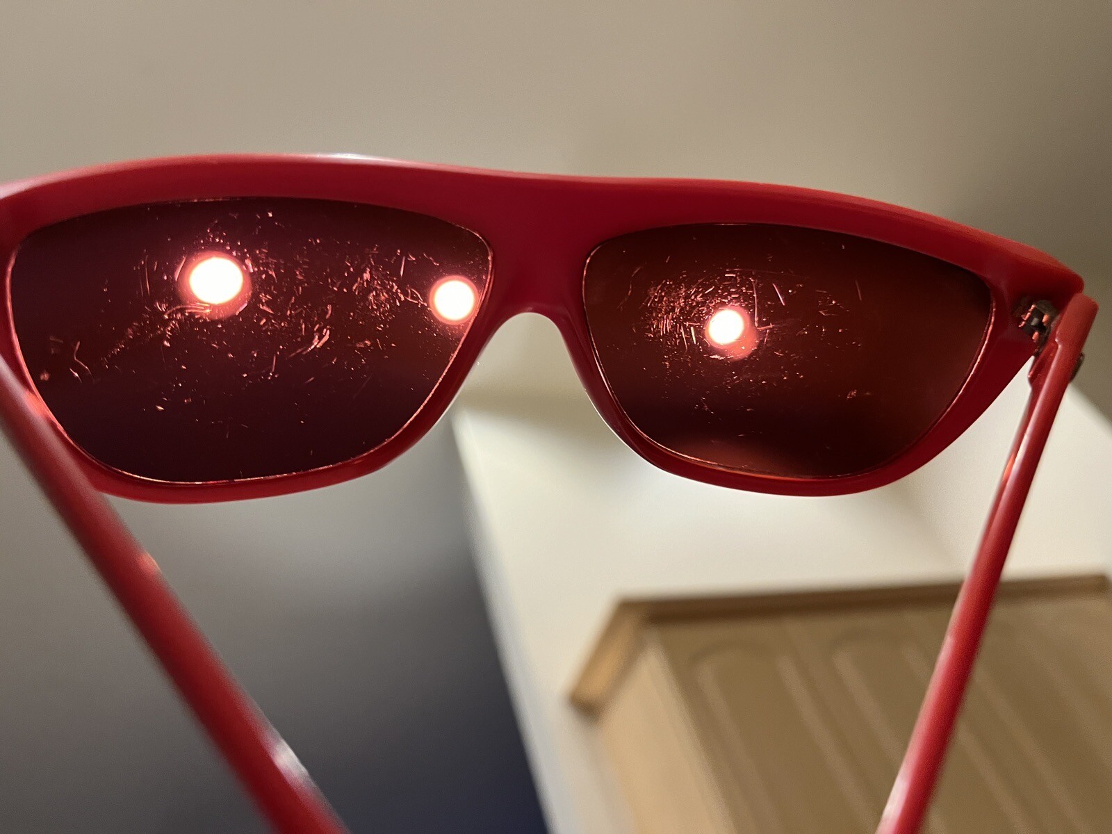 как выглядит Vintage Liz Claiborne Sunglasses Red Flat Top Shield 80s Frame Italy фото