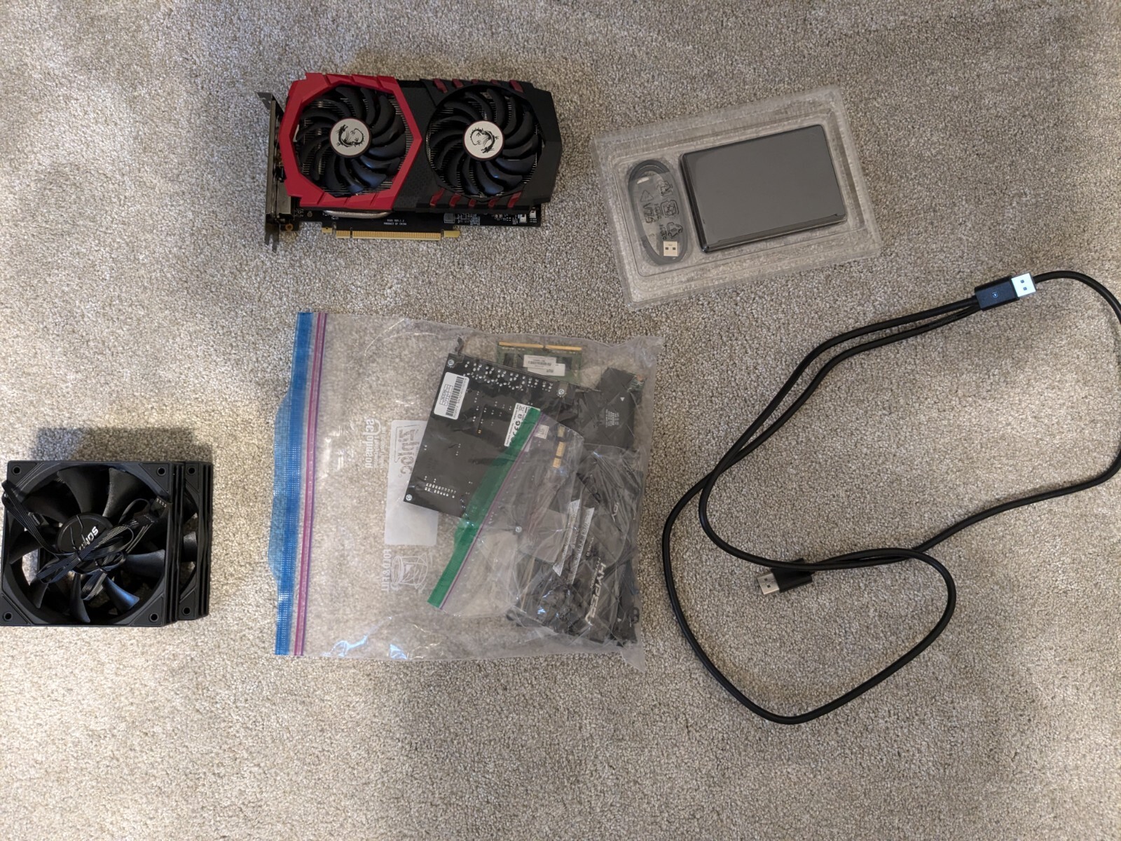 как выглядит Assorted laptop and computer parts Creative, MSI, HP RAM, CPU, GPU lot фото