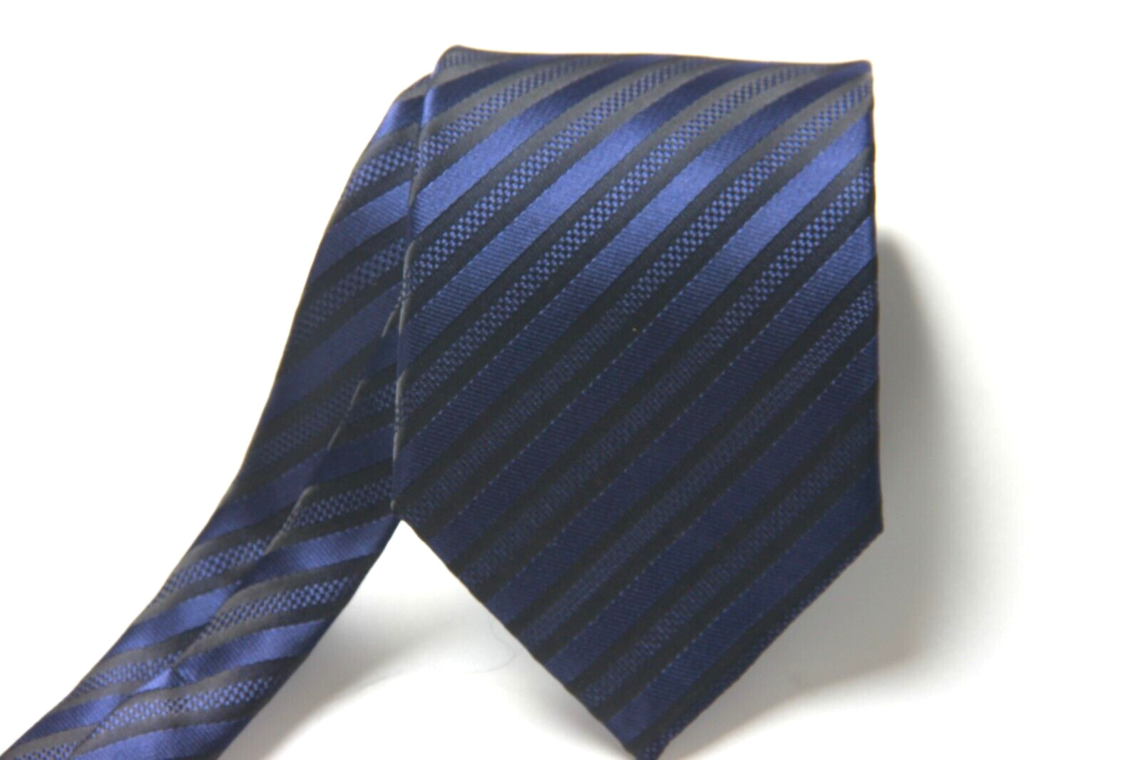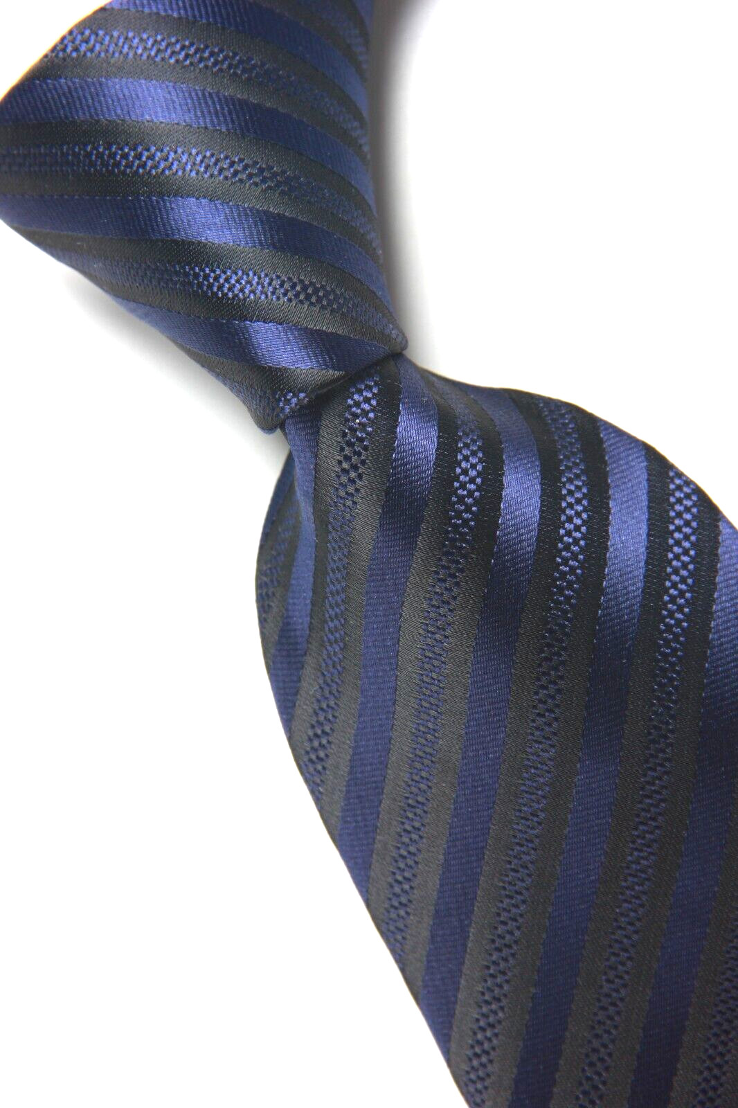 как выглядит New Classic Striped Blue Black JACQUARD WOVEN 100 Silk Men