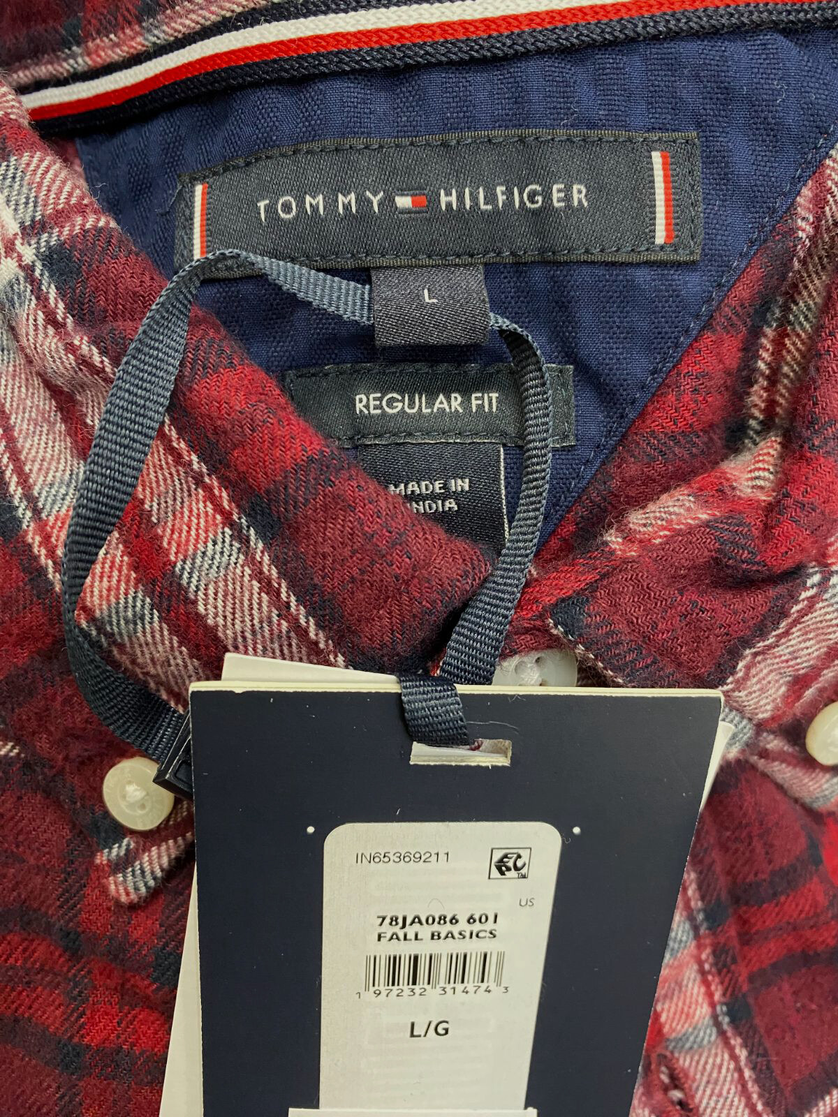 Tommy Hilfiger Men's Red Brushed Plaid Button-Down Shirt Size L