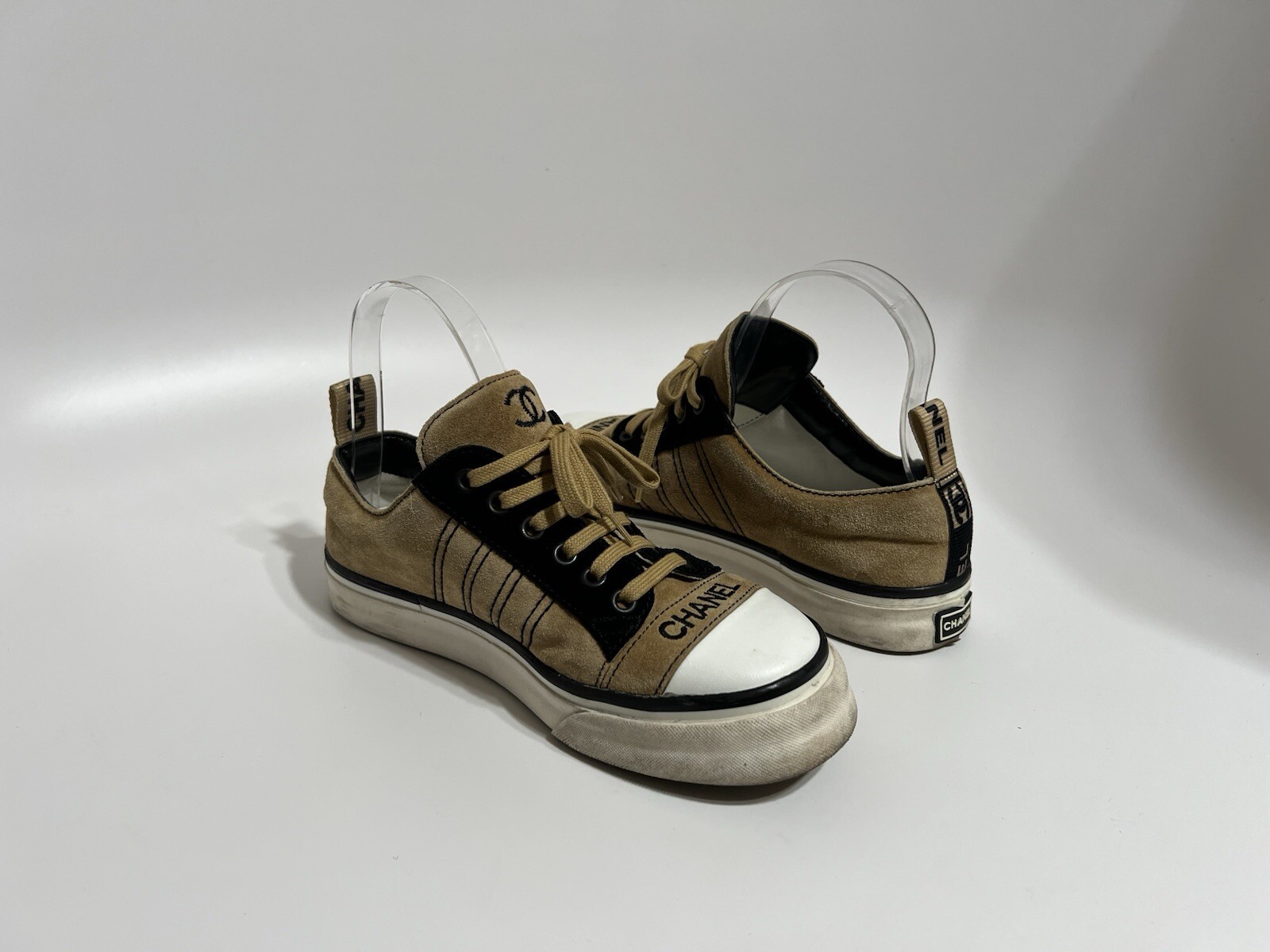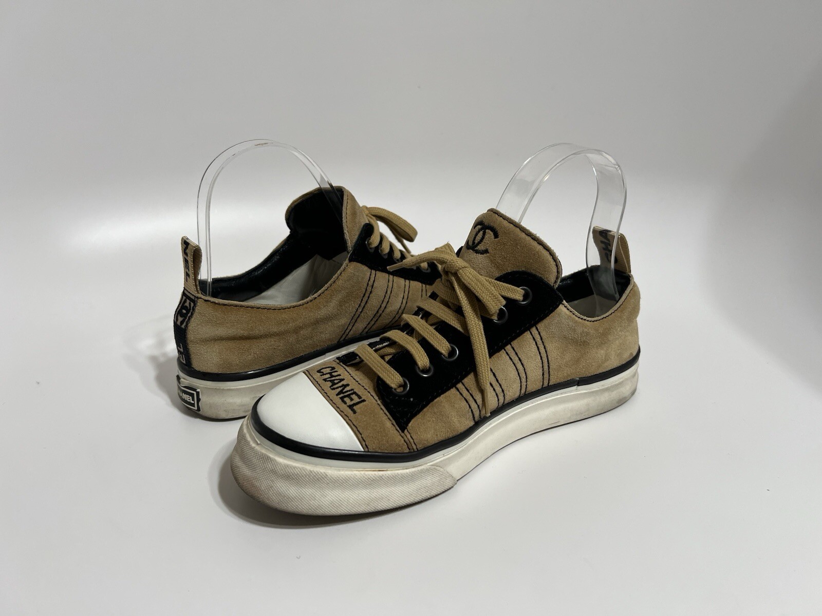 Vtg Chanel Light Brown Suede Sneaker Shoes 36