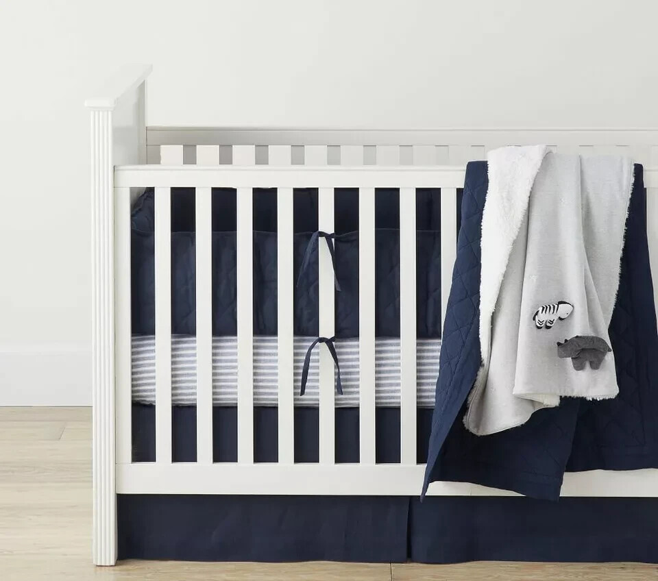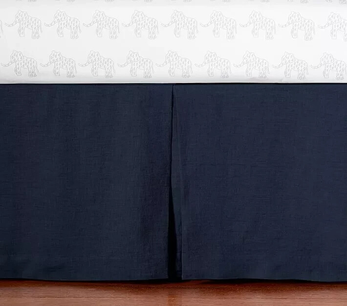 как выглядит Pottery Barn Baby Navy Blue Belgian 100 Flax Linen Crib Skirt 16" Drop фото