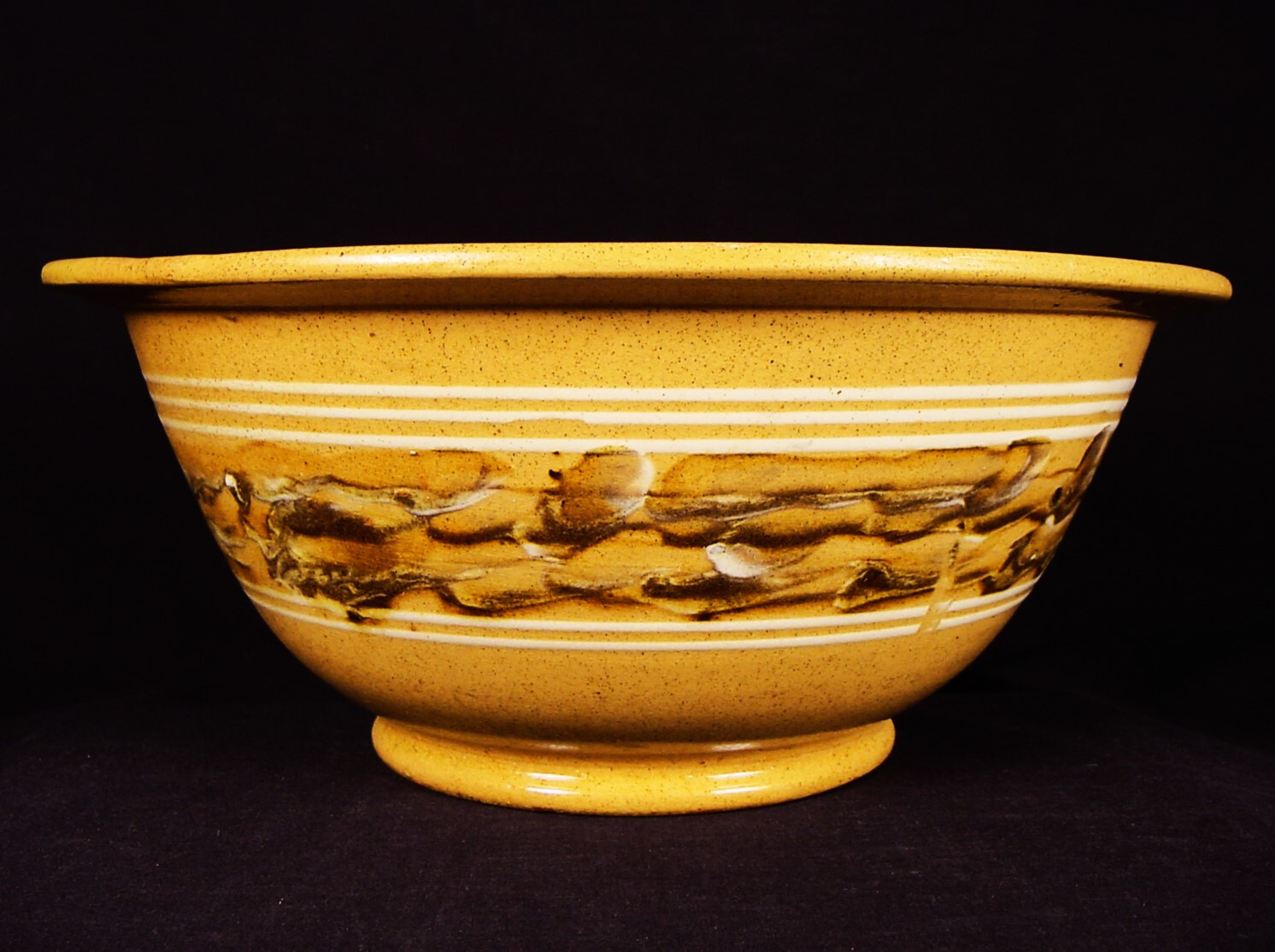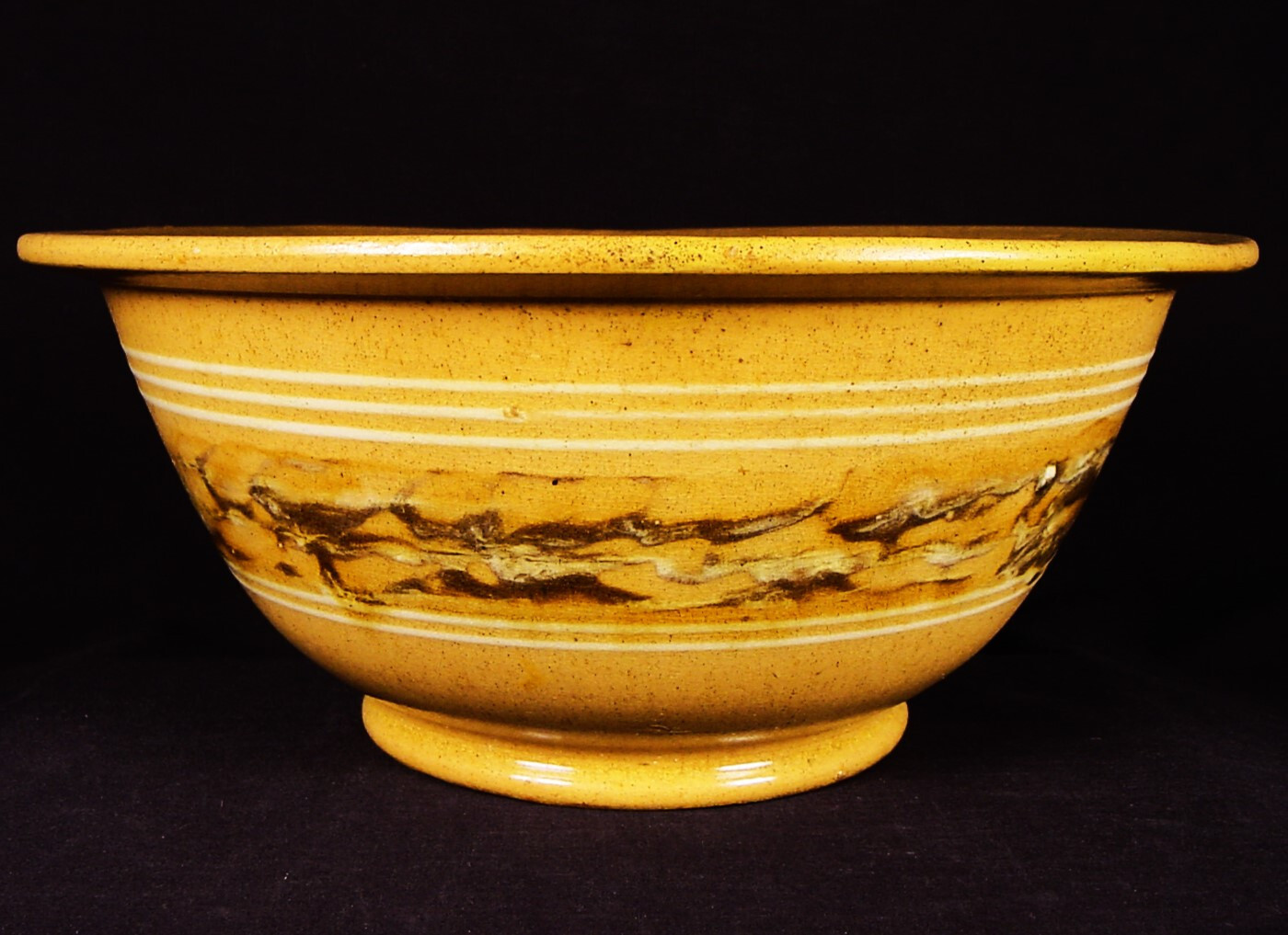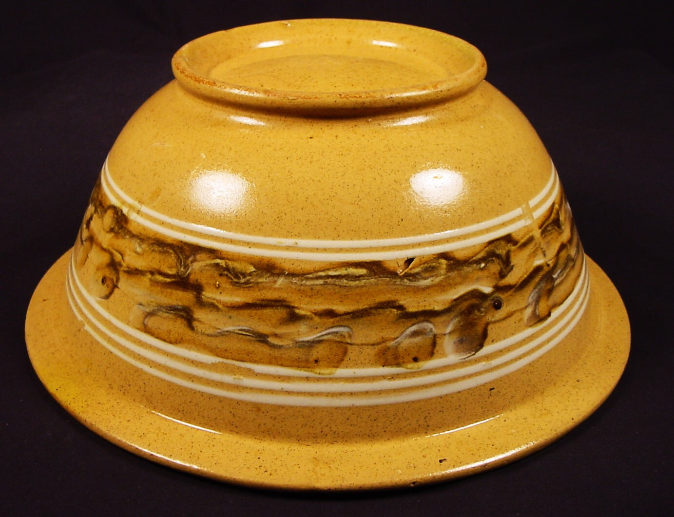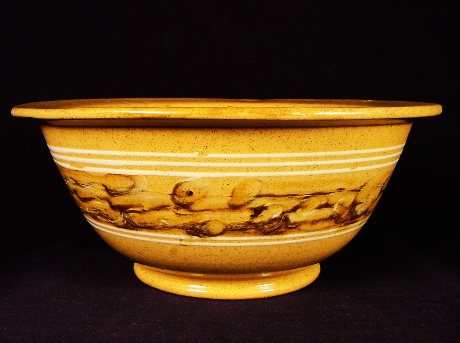 EXTREMELY RARE 1800s AMERICAN MOCHA BAND BOWL YELLOW WARE MOCHAWARE MINT