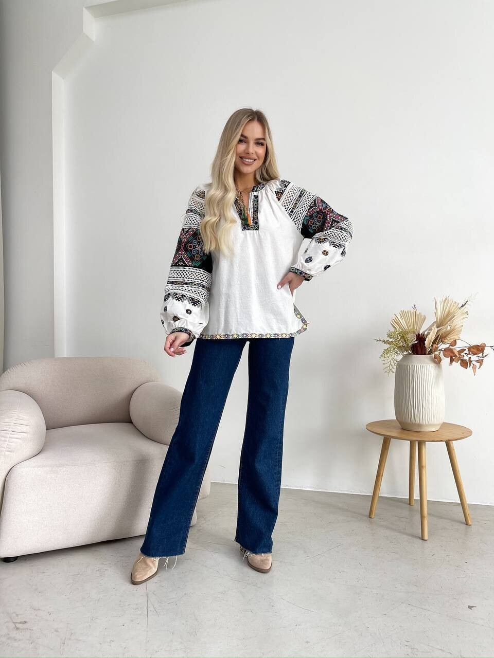 Ukrainian vyshyvanka White embroidered women blouse long sleeve shirt S - 3XL