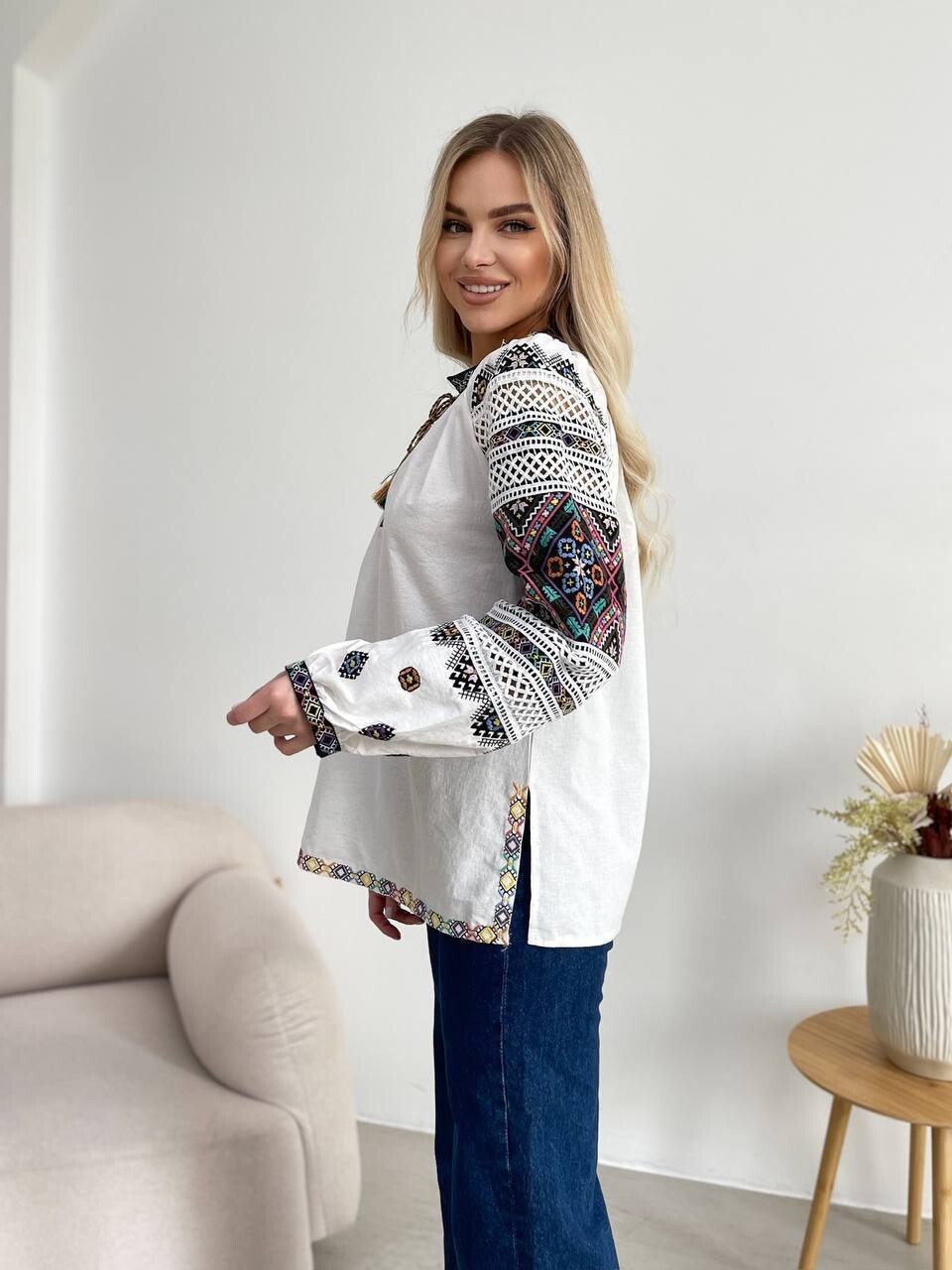 как выглядит Ukrainian vyshyvanka White embroidered women blouse long sleeve shirt S - 3XL фото