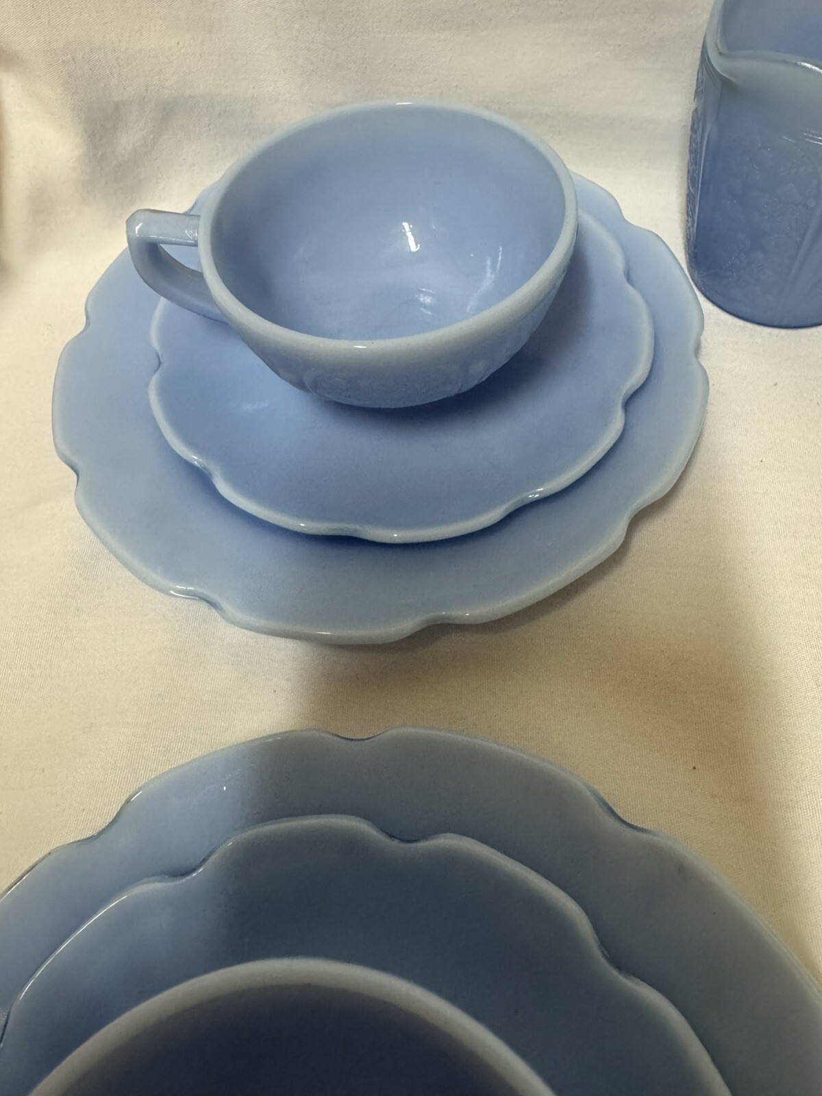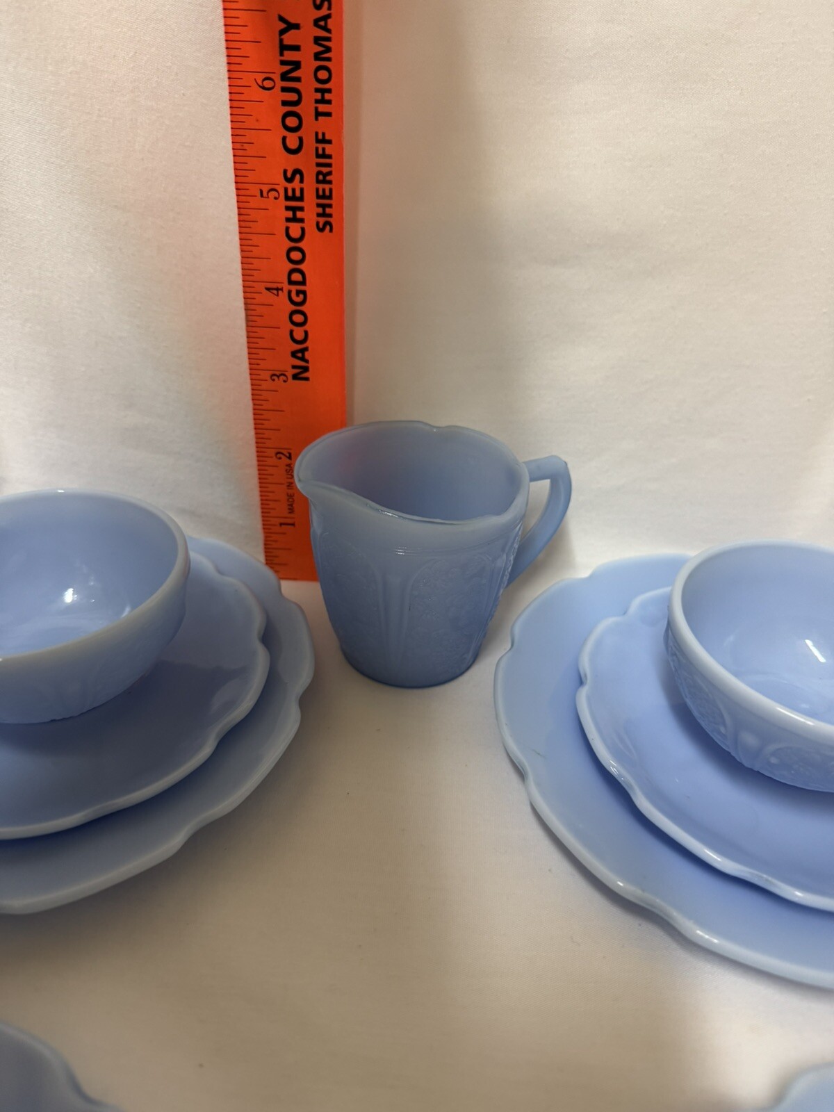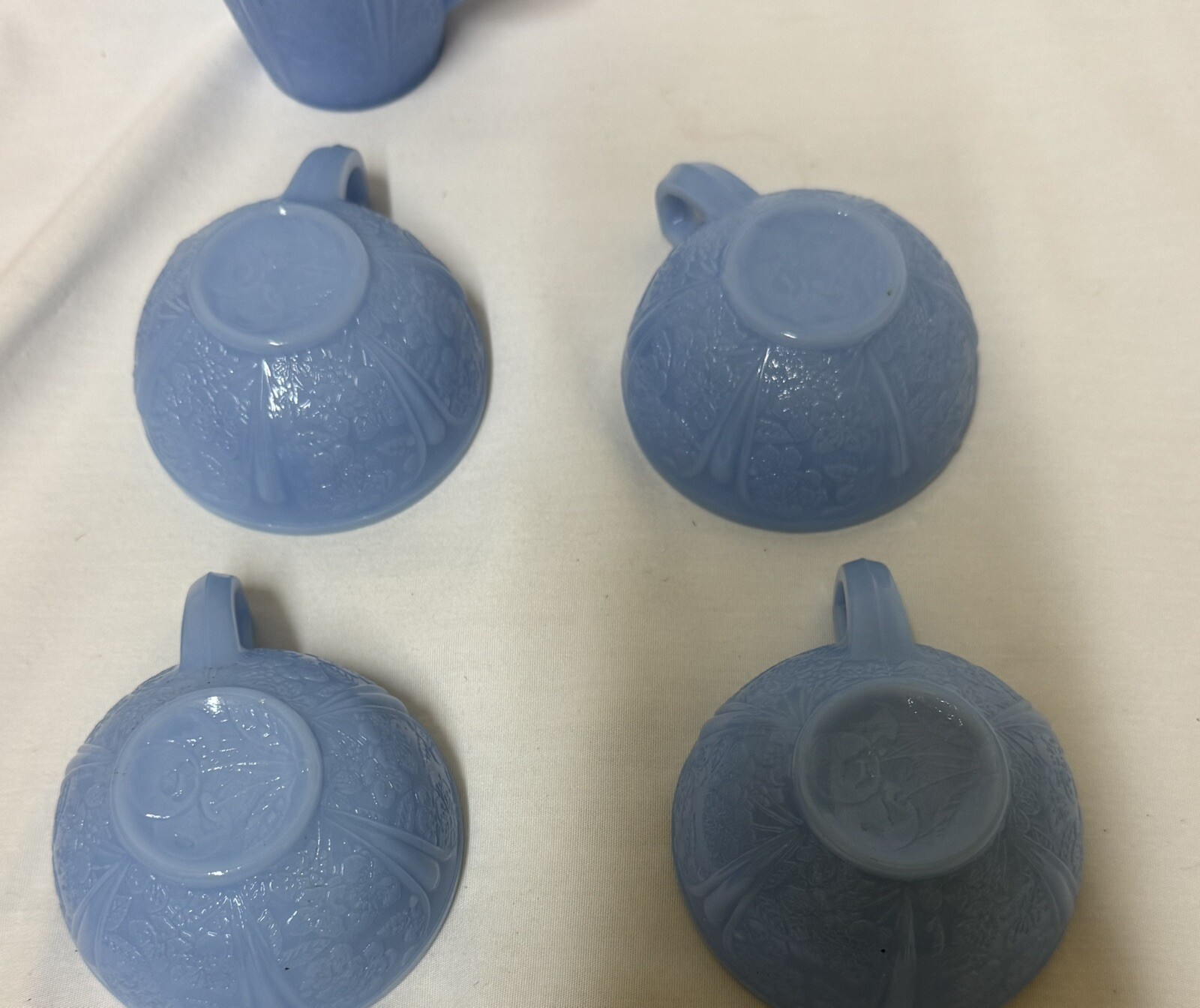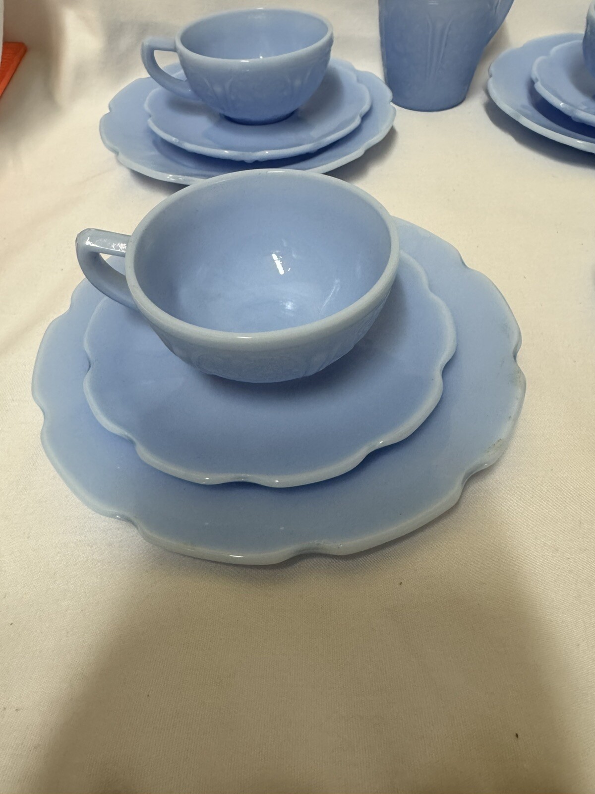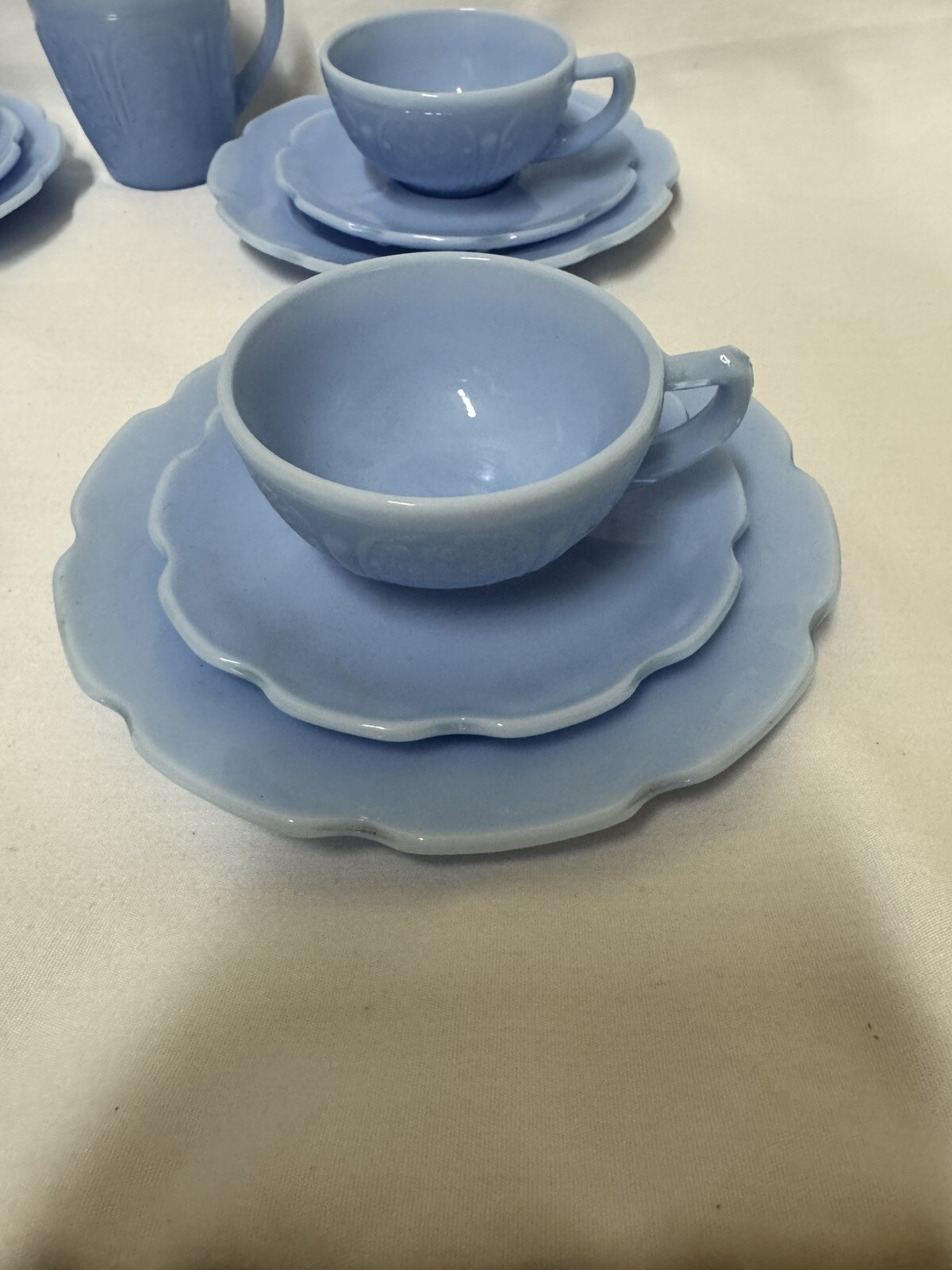 как выглядит Jeanette Delphite Blue Cherry Blossom Childs 13 pc Tea Cup/Saucer Set фото