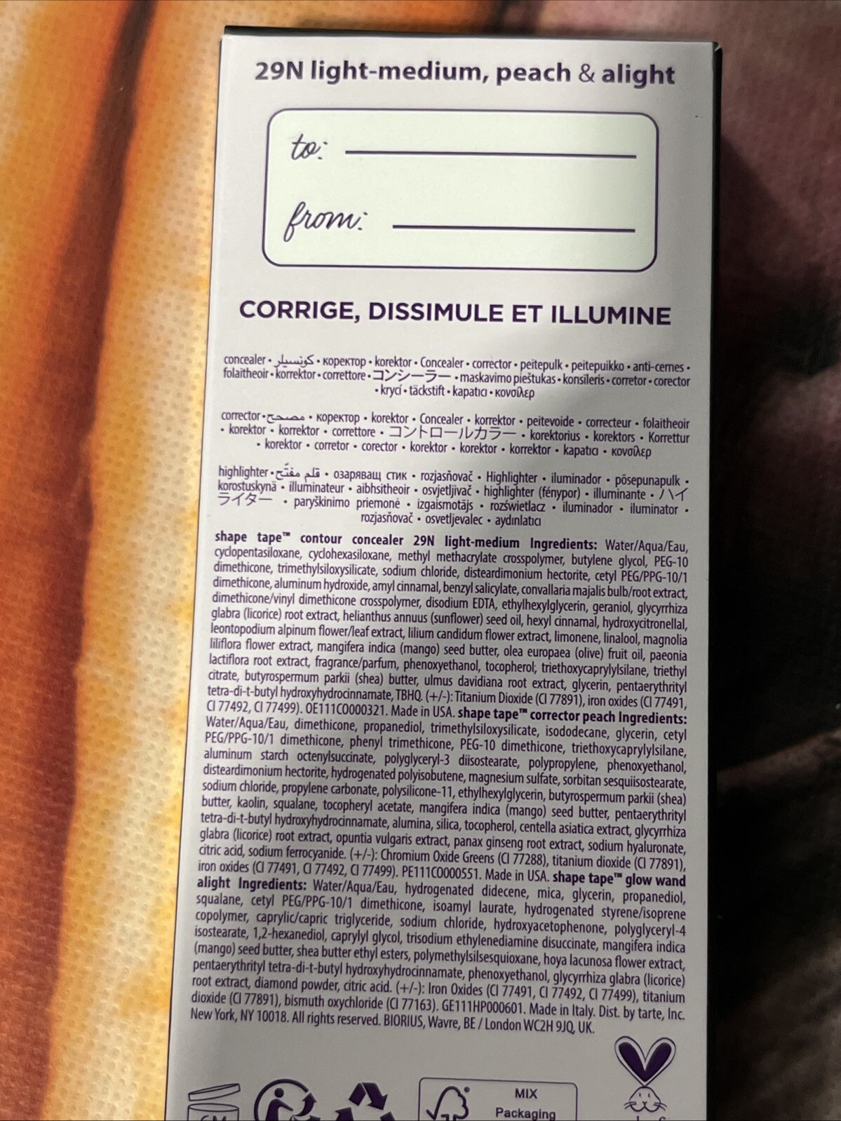 как выглядит TARTE SHAPE TAPE 29N LIGHT/MED PEACH ALIGHT CORRECT, CONCEAL  BRIGHTEN TRIO фото