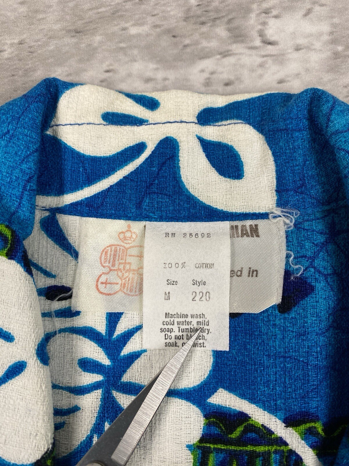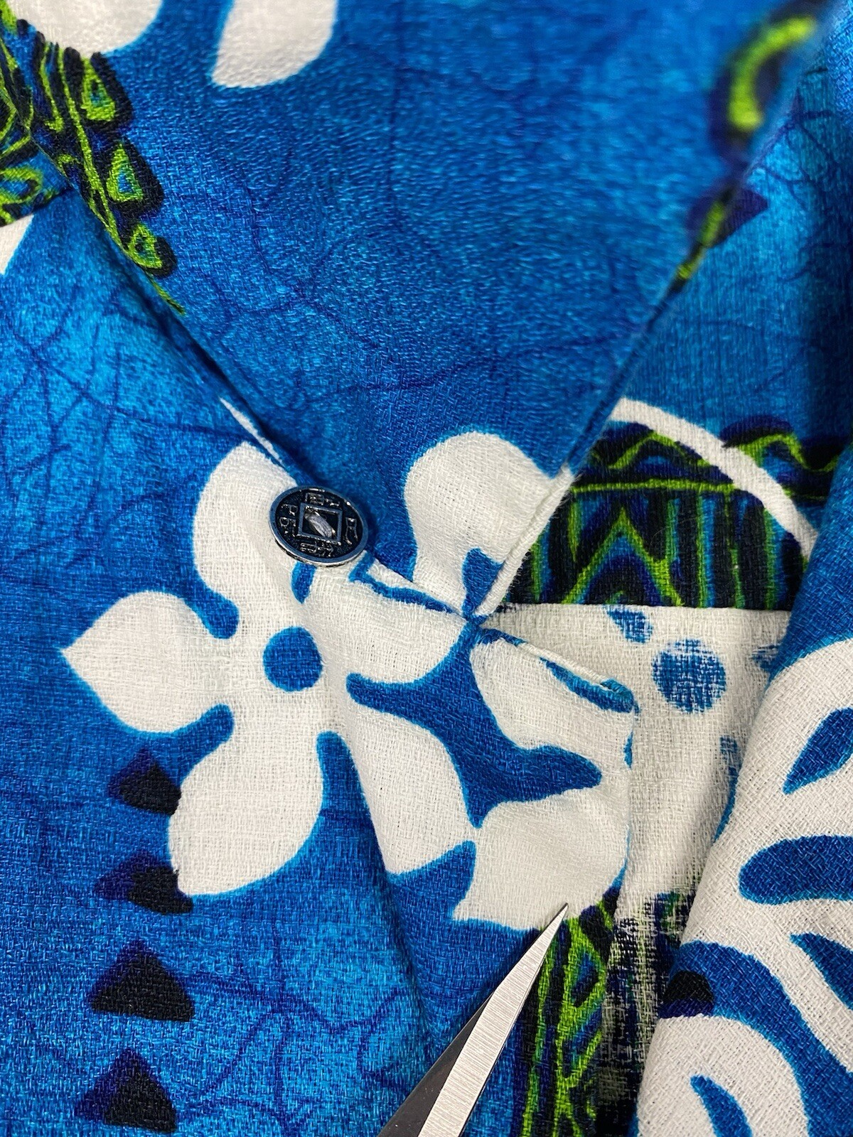 vintage ROYAL HAWAIIAN SHIRT LOOP COLLAR METAL BUTTON FLORAL POCKET AOP BLUE