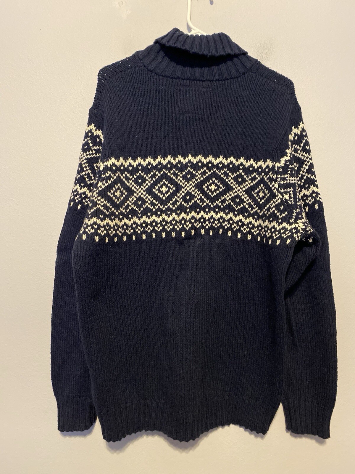 Old Navy Men's Large Shawl Neck Navy/White Fair Isle Wool Blend Pullover