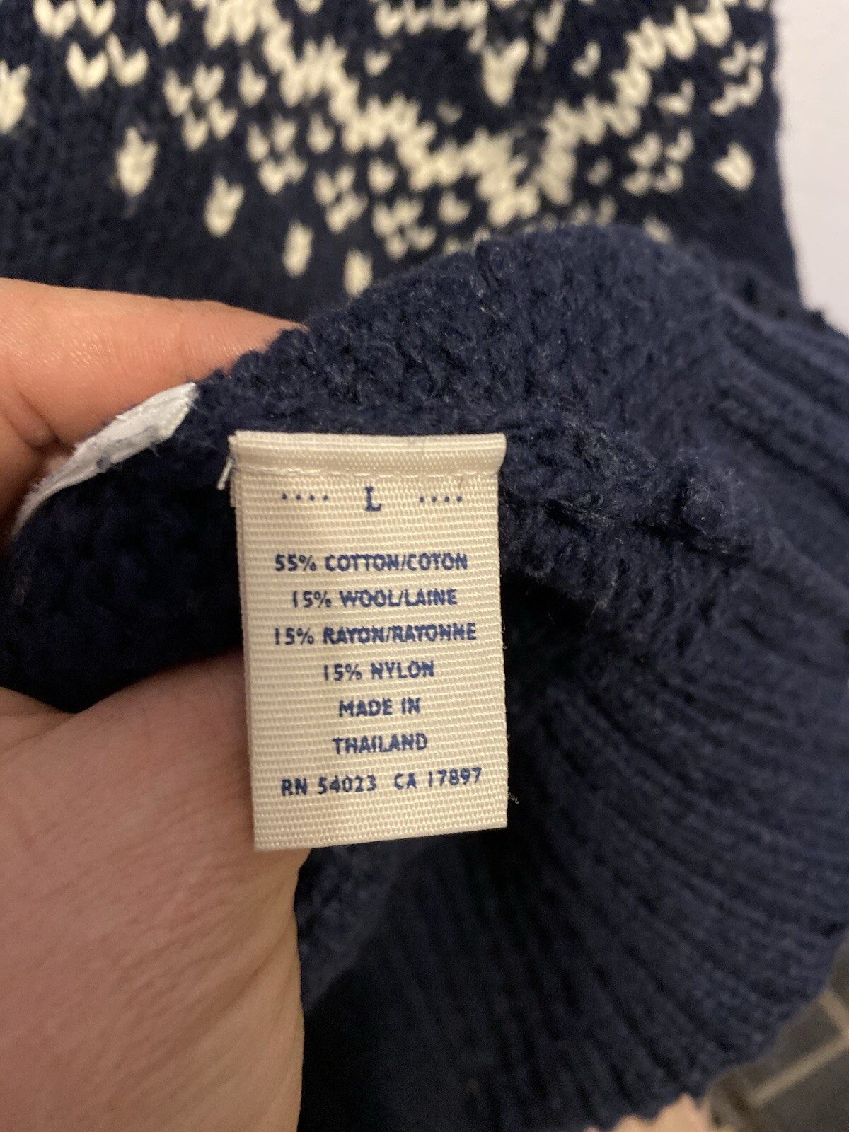 как выглядит Old Navy Mens Large Shawl Neck Navy/White Fair Isle Wool Blend Pullover фото