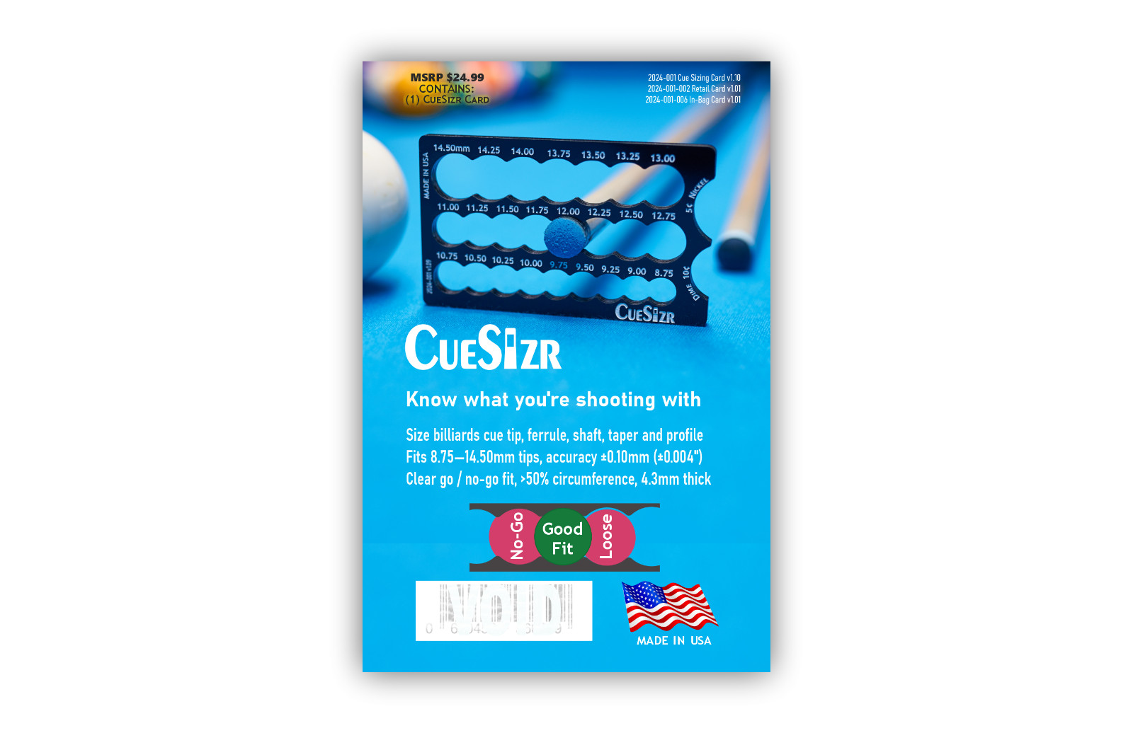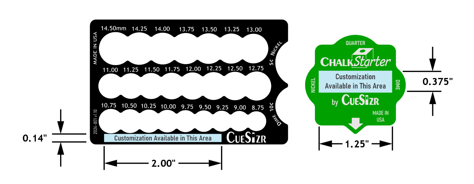 CueSizr Pool Cue Tip Sizer Blk/Wht 8.75 - 14.5mm, Know What You're Shooting With