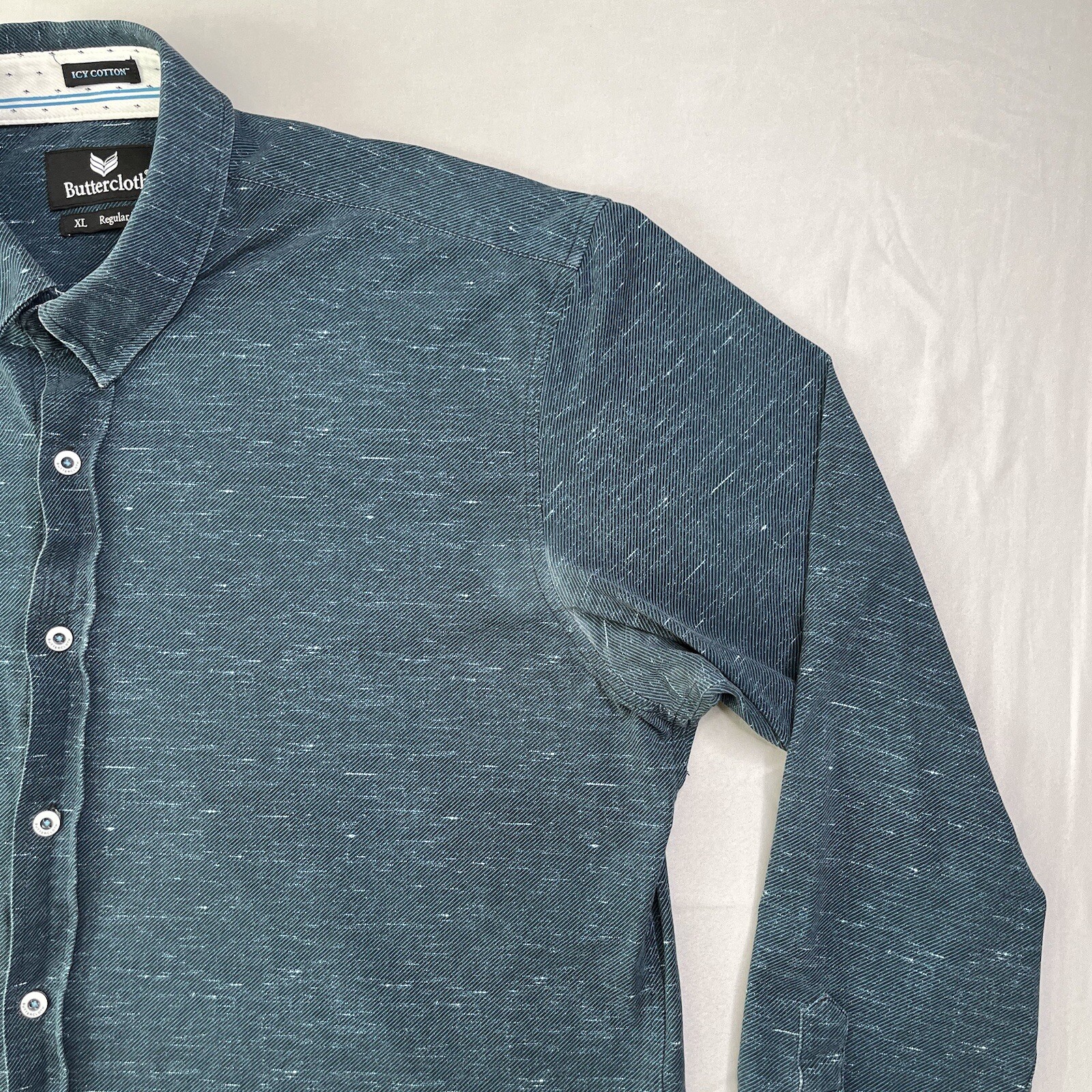 Buttercloth Shirt Mens X-Large Green Blue Icy Cotton Regular Fit Button Up LS