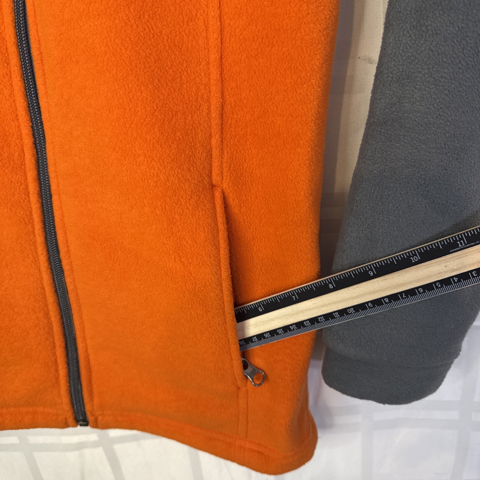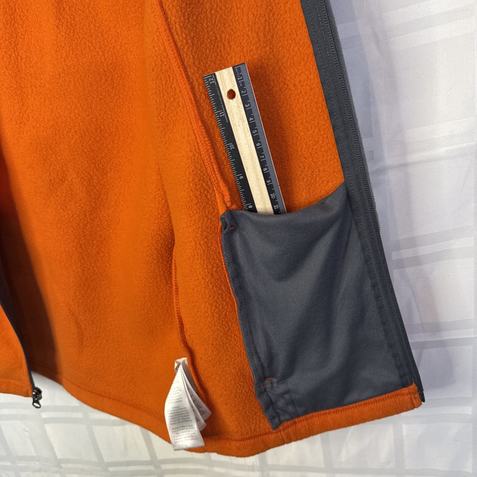 как выглядит Columbia orange gray fleece zip- up jacket child M 10/12 gently used фото