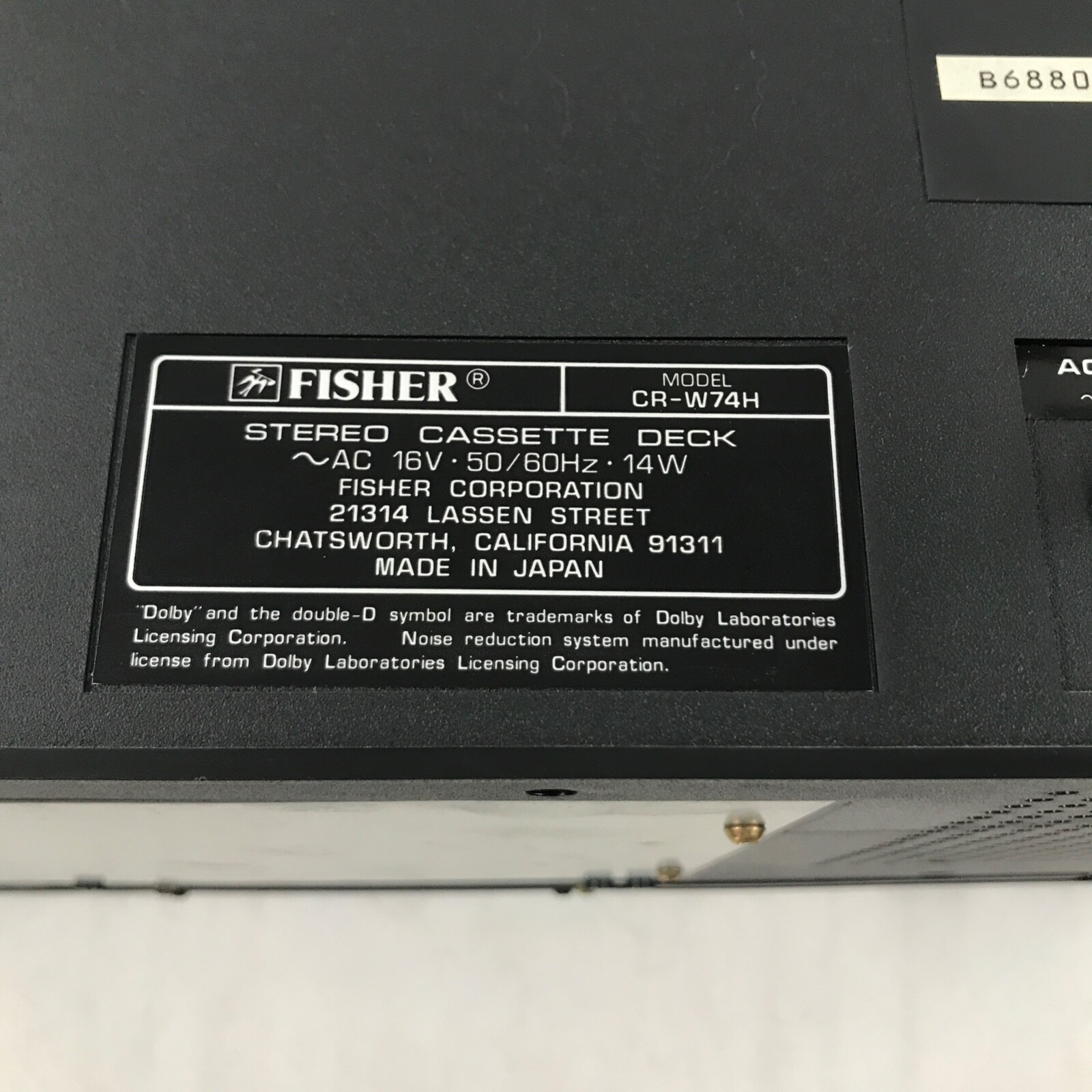 Vintage Fisher CR-W74H Stereo Double Cassette Tape Deck Parts/Repair Powers On