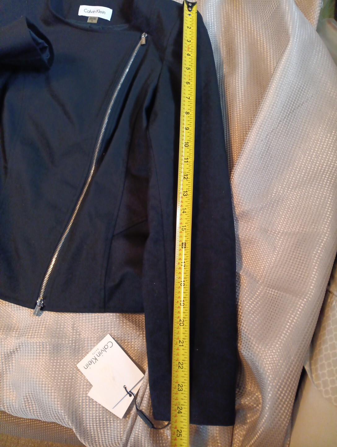 Vgt Calvin Klein Tags Woman 8 Blazer Jacket Short Side Zip Lined Navy Stretch